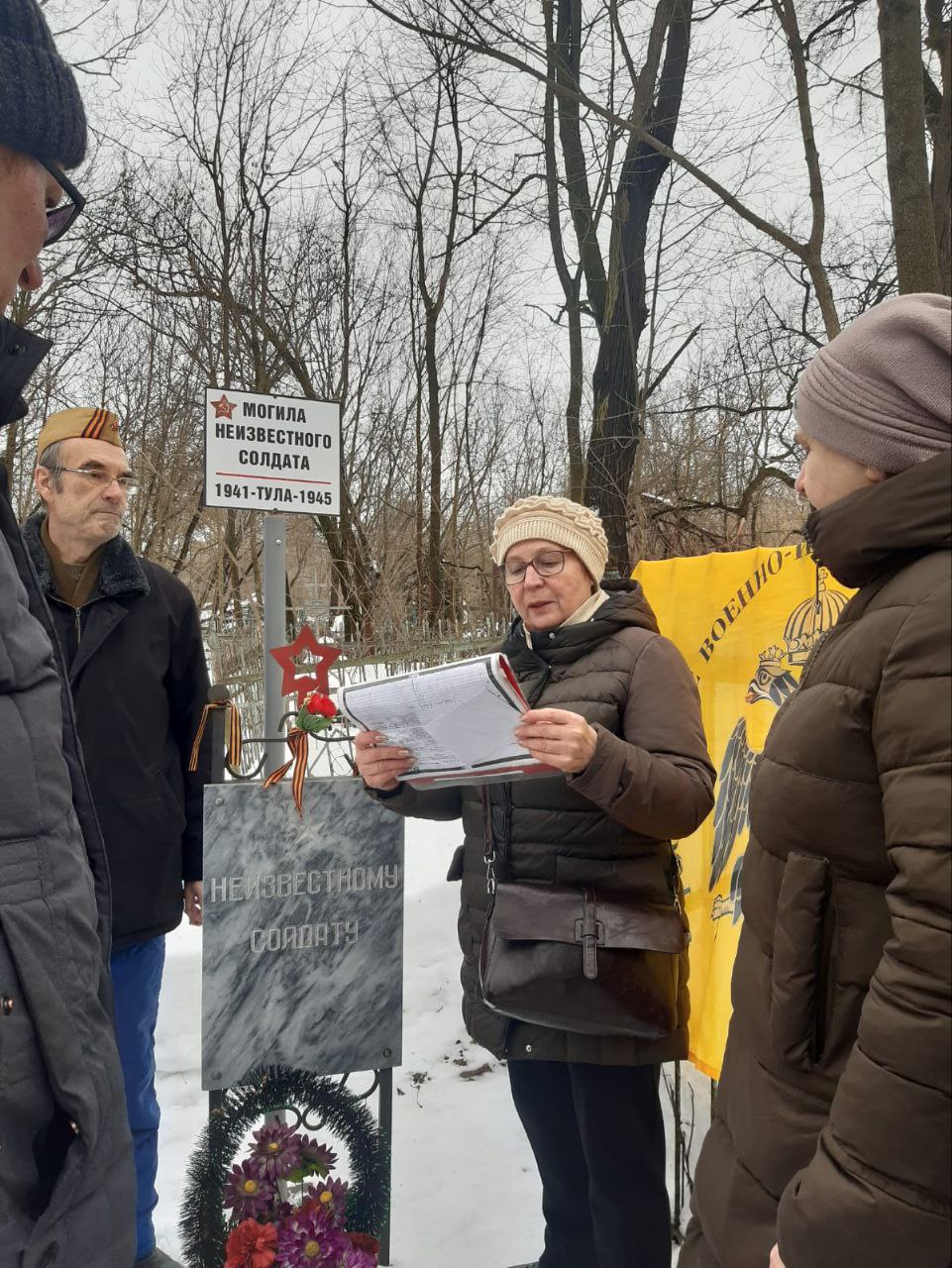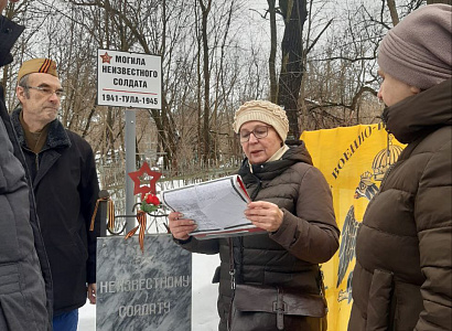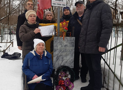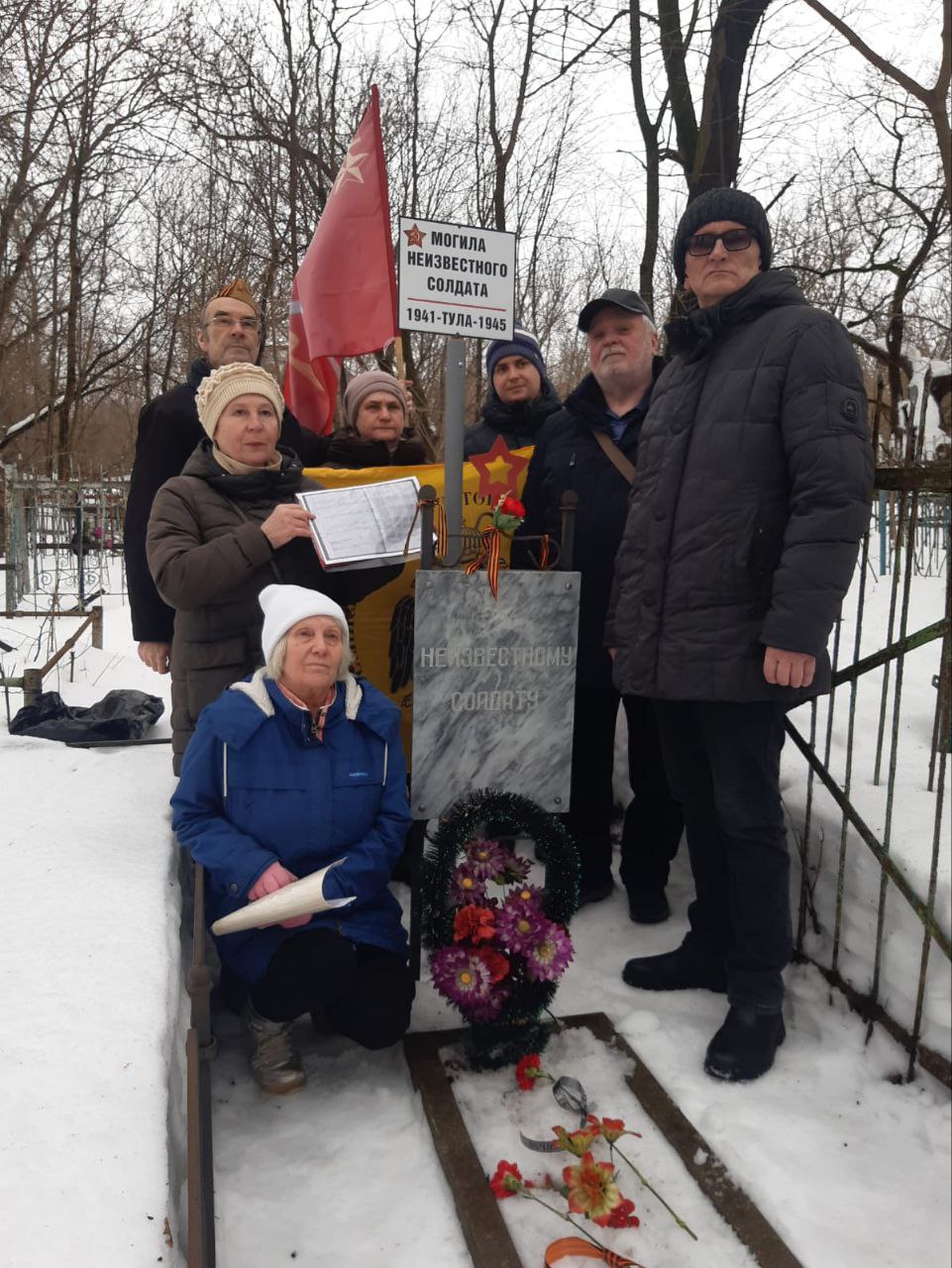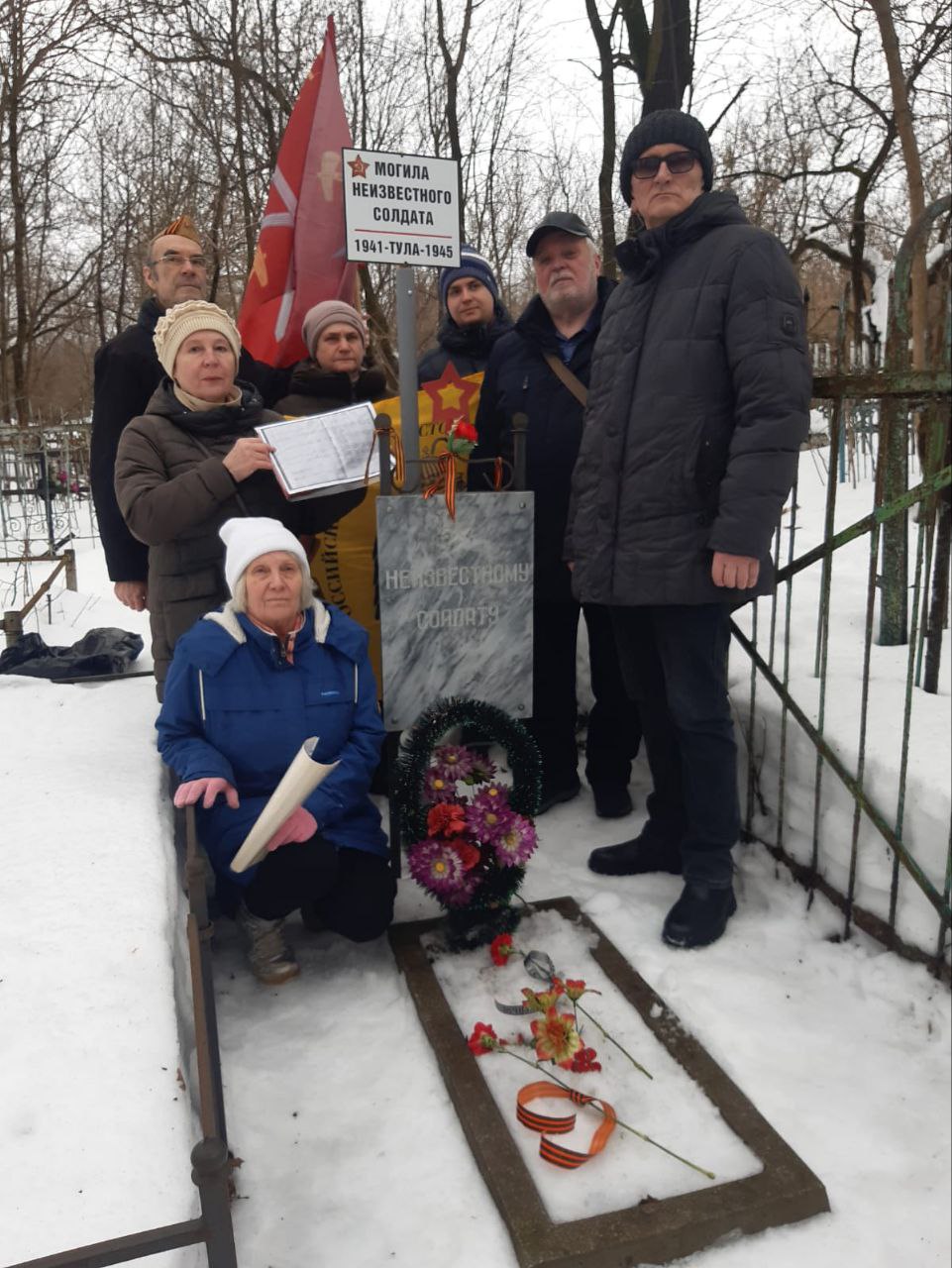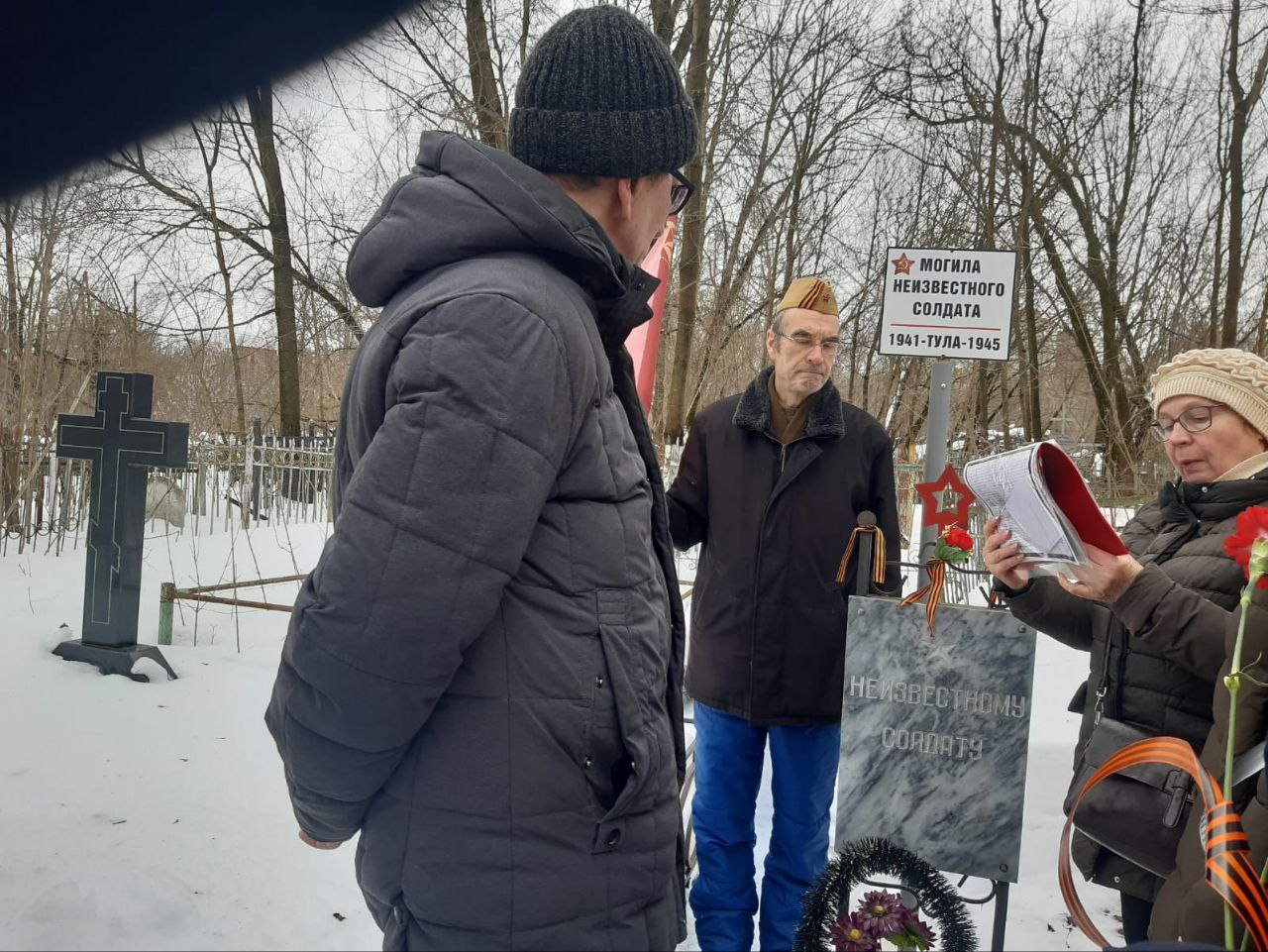 2026 год - 85-я годовщина обороны Тулы от фашистских захватчиков. 14 февраля, в преддверии Дня Защитников Отечества Тульская региональная общественная организация «Ветеран» провела поминание воинов-участников боевых действий, умерших в эвакогоспитале Тулы и захороненных на Солунском кладбище (Пролетарский район). В мероприятии приняли участие Афанасьева С.В. – член Российского военно-исторического общества, Савинов Ю.Н. – зав. отделом военно-патриотической работы музея-усадьбы «Ясная поляна», Кутищев Иван Павлович – АНО волонтерский центр культурных традиций «Сердце доброты», ветераны.Митинг прошел около Воинского захоронения братской могилы воинов, погибших при обороне Тулы. Председатель ТРОО «Ветеран» Федосеев И.И. поблагодарил присутствующих за большую работу по сохранению памяти защитников Родины. Зам. председателя по поисковой работе Барышников Е.И. рассказал о работе по восстановлению имен и судеб захороненных воинов. О поисках и внесении на мемориал вновь найденных имен воинов. Покровская И.П. зачитала их имена. К мемориалу возложили цветы, почтили память погибших минутой молчания.