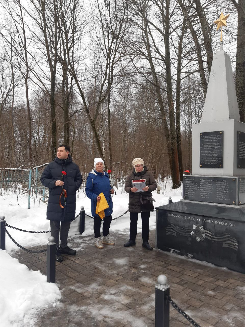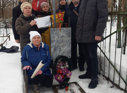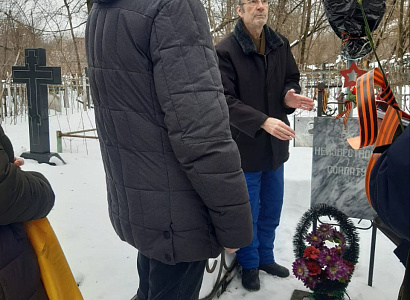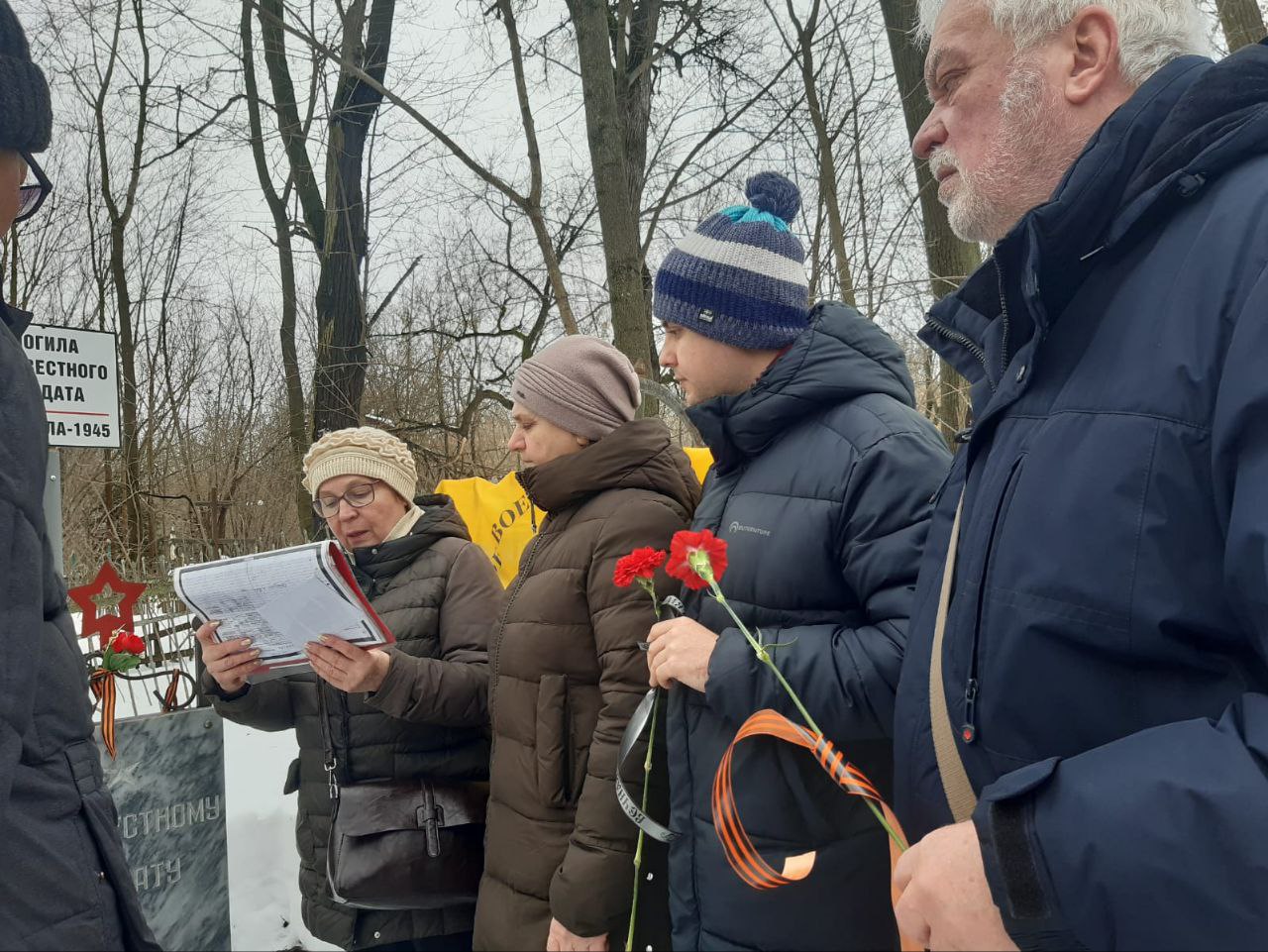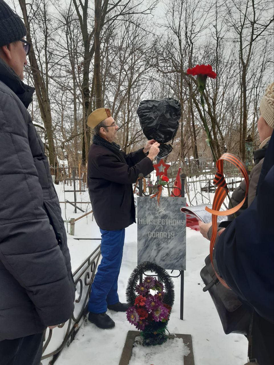 Участники мероприятия посетили могилу неизвестного солдата. Барышников Е.И. открыл новую табличку с обозначением могилы, взамен старой. Покровская И.П. озвучила те минимальные сведения о неизвестном солдате, которые удалось установить. Федосеев И.И. сказал «Война не закончена, пока не захоронен последний солдат». К сожалению, еще много их не найденных и не захороненных на нашей земле. К могиле возложили цветы и почтили память всех неизвестных солдат минутой молчания.