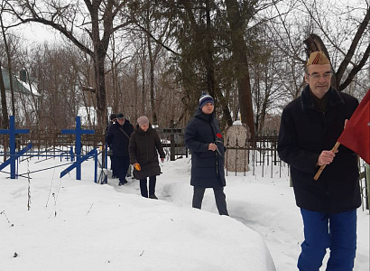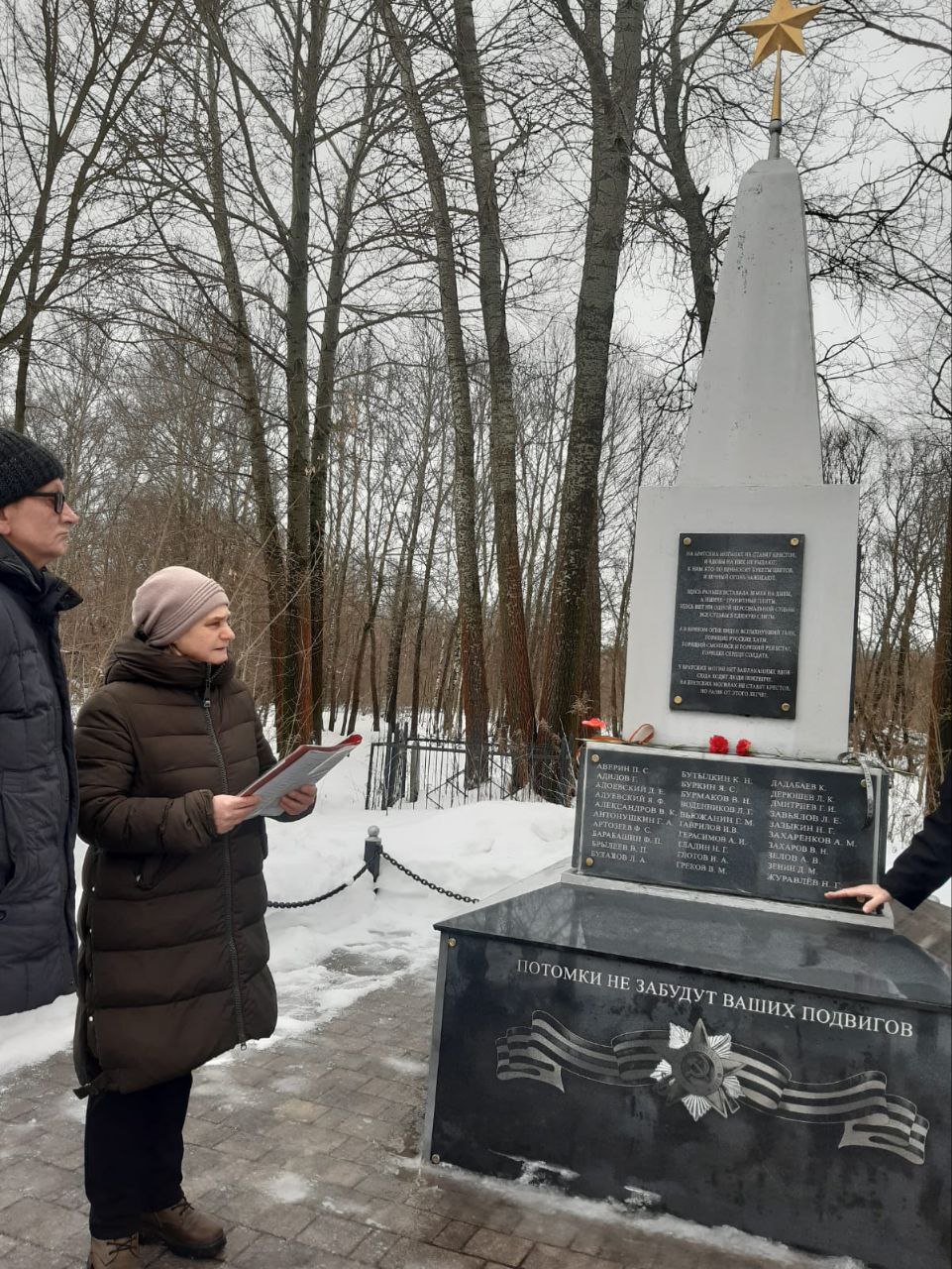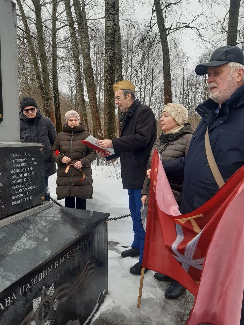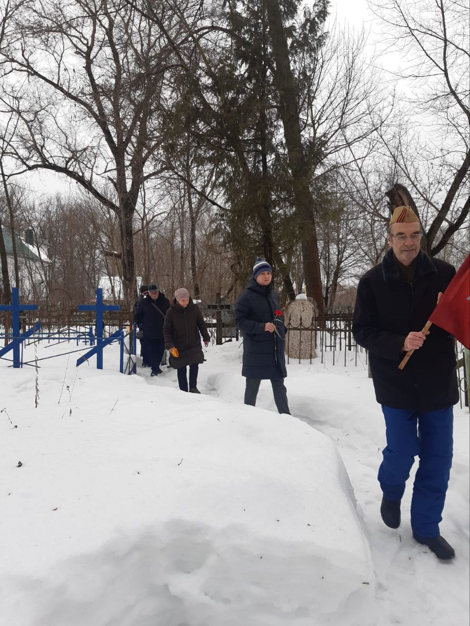 Участники мероприятия посетили могилу неизвестного солдата. Барышников Е.И. открыл новую табличку с обозначением могилы, взамен старой. Покровская И.П. озвучила те минимальные сведения о неизвестном солдате, которые удалось установить. Федосеев И.И. сказал «Война не закончена, пока не захоронен последний солдат». К сожалению, еще много их не найденных и не захороненных на нашей земле. К могиле возложили цветы и почтили память всех неизвестных солдат минутой молчания.