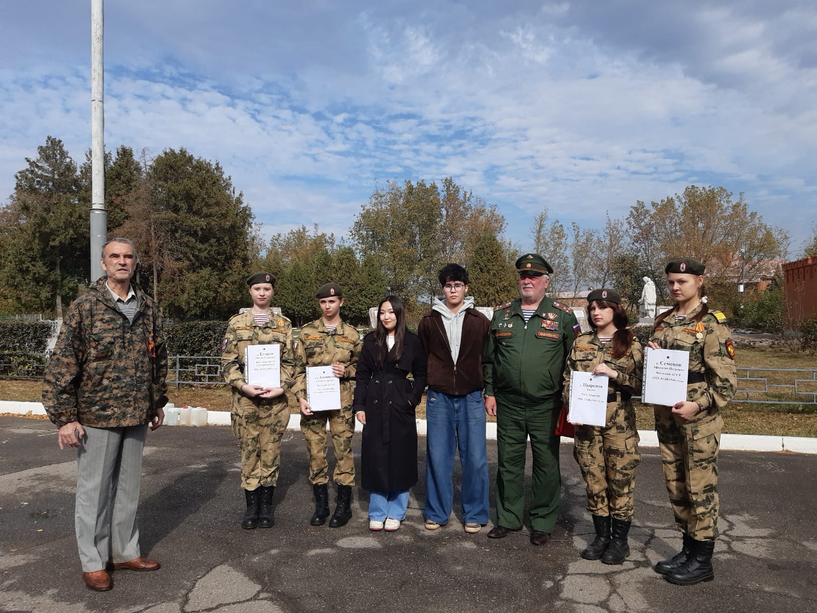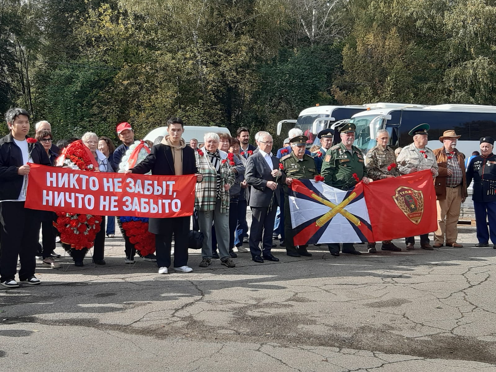 28.09.2024 члены ТРОО «Ветеран» приняли участие в традиционной патриотической акции «Никто не забыт, ничто не забыто» памяти погибших воинов - якутян на территории Тульской области в годы Великой Отечественной войны 1941-1945 г.г. В Акции приняли участие члены РОО«Якутское землячество в Москве» при Правительстве РФ во главе с первым заместителем председателя Власовым Василием Михайловичем, ветераны и студенты Московских ВУЗов. Глава Администрации Зареченского района Щербаков Максим Александрович, кадеты колледжа Росгвардии.