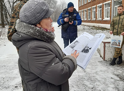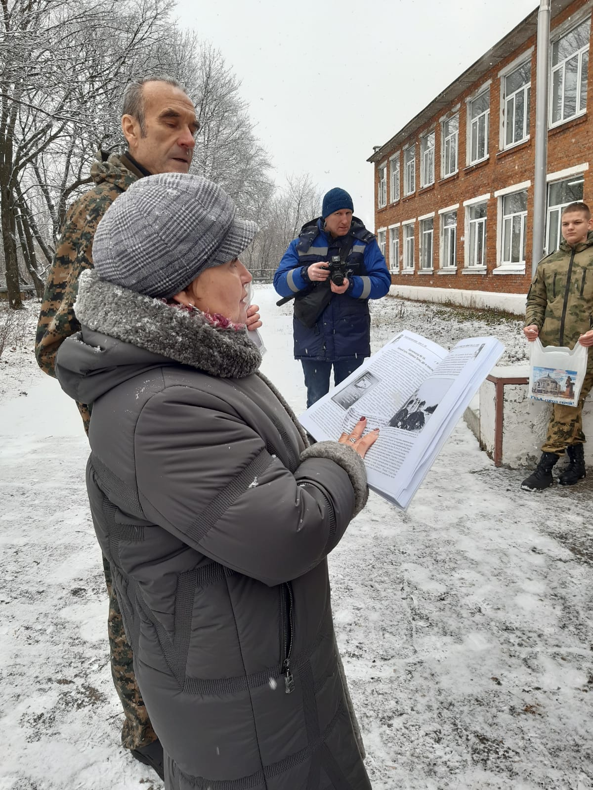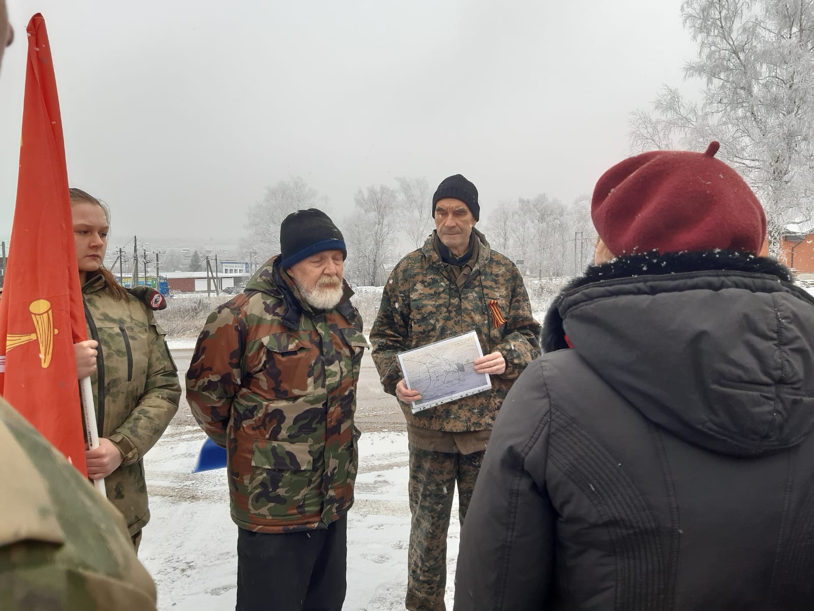 «Ветеран» по поисковой работе, член РВИО Барышников Евгений Иванович рассказал о том, как проходили бои в районе р. Бежка, где находились наши защитники, где – враги. Показал карты и документы. Участники смогли своими глазами увидеть и представить, как проходили бои.