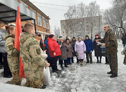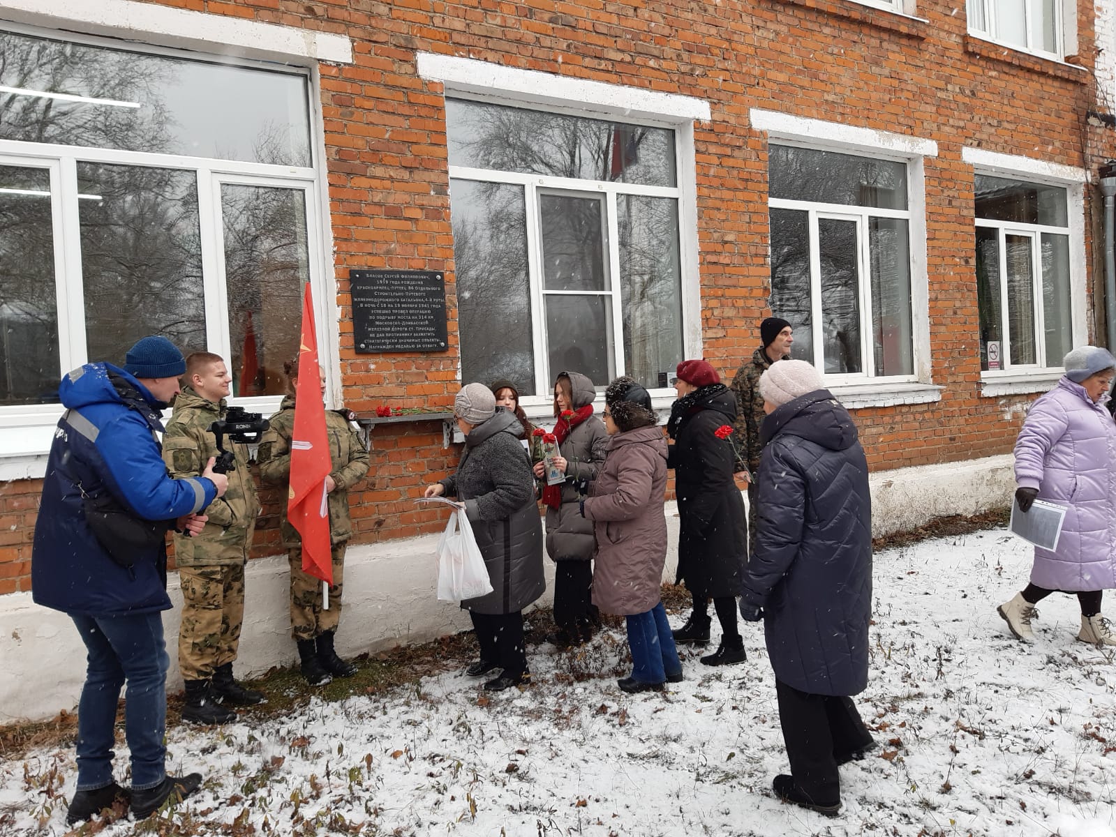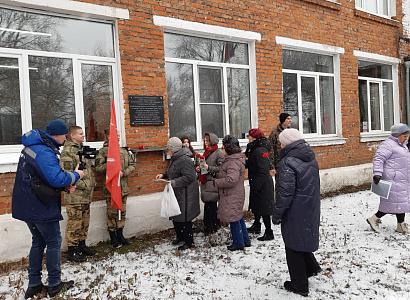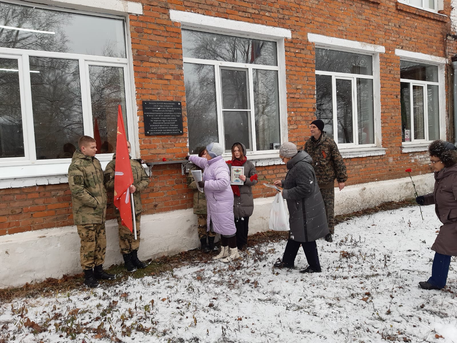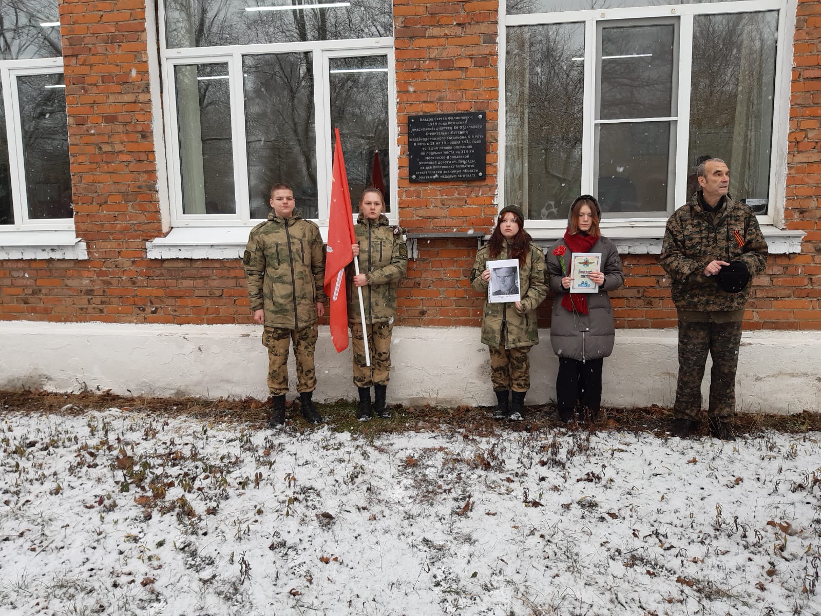 Следующей остановкой на маршруте автопробега стала ж/д станция Присады, в районе которой вела бой 413 стрелковая дивизия с 32 танковой бригадой. 1 сентября 2023 года на стене школы станции Присады была установлена мемориальная доска красноармейцу-путейцу Власову Сергею Филипповичу. Барышников Е.И., изучая историю 86-го Отдельного Строительно-Путевого железнодорожного батальона, участвовавшего в обороне Тулы в 1941 году, нашел информацию о подвиге красноармейца Власова Сергея Филипповича – сибиряка, родом из Кузбасса, который в ночь с 18 на 19 ноября 1941 года произвел подрыв моста на 314 км Московско-Донбасской железной дороги станции Присады, помешав противнику захватить стратегически значимые объекты. За этот подвиг Власов Сергей Филиппович был награжден медалью «За отвагу». Эта информация была передана в «Российское военно-историческое общество». С их помощью была установлена мемориальная доска. У мемориальной доски был выставлен почетный караул кадетов Росгвардии. Участники автопробега, преподаватели и школьники провели митинг. Барышников Е.И. рассказал о подвигах красноармейцев - железнодорожниках, Сергеева Галина Рафаэльевна, член РВИО, показала документы и альбом с редкими фотографиями. Школьникам передали архивные документы, книгу Е.Барышникова «Боевой путь 86 ОСПЖДБ» и тульские сувениры. Участники митинга возложили цветы к мемориальной доске.