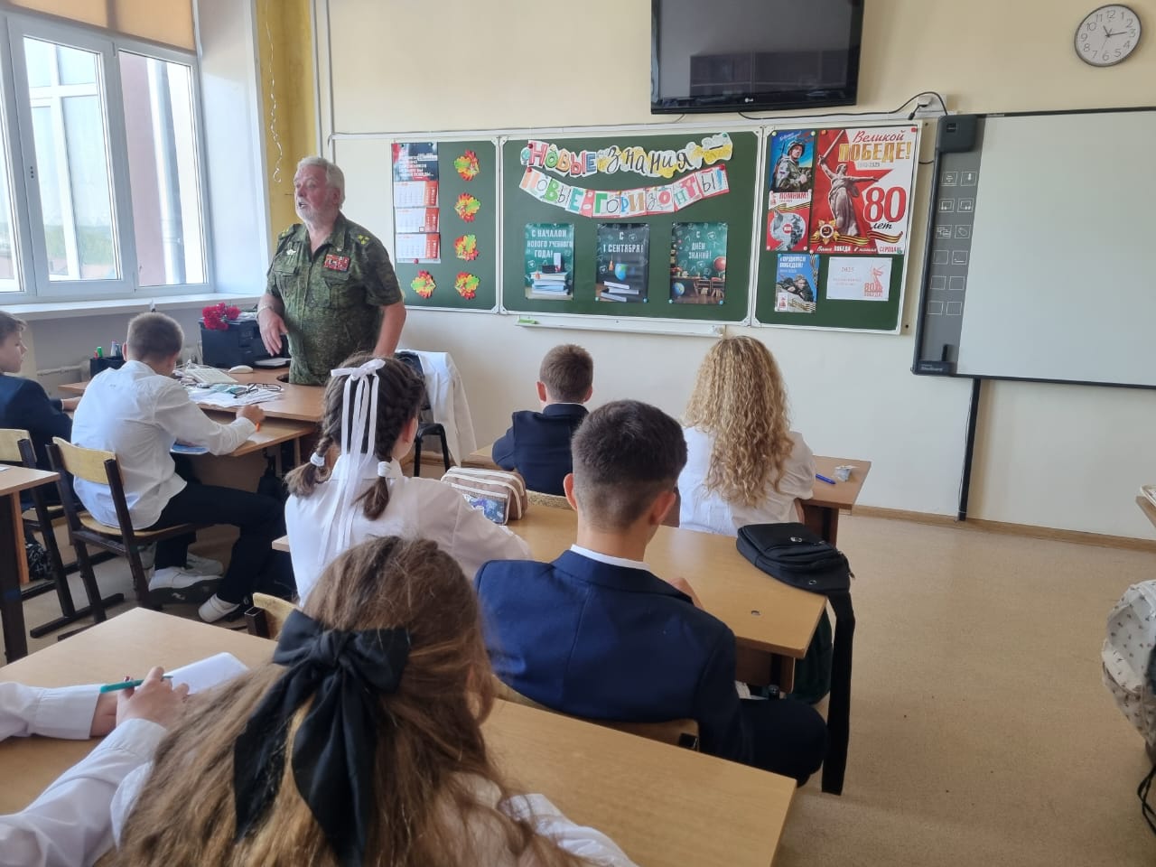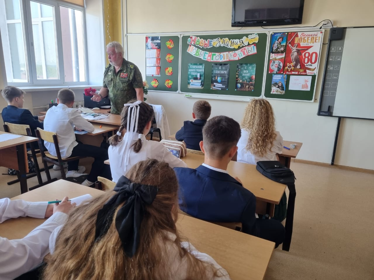 1 сентября члены Тульской Региональной Общественной Организации «Ветеран» традиционно пришли поздравить с «Днем Знаний» учеников и учителей Центра Образования №4. Они присутствовали в качестве почетных гостей на торжественной линейке. Председатель ТРОО «Ветеран» почетный ветеран Вооруженных Сил России Федосеев Игорь Иванович в приветственном слове напомнил о том, что Президент Российской Федерации В.В. Путин объявил 2025 год - Годом защитника Отечества и 80-летия Победы в Великой Отечественной войне 1941-1945 годов, в целях сохранения исторической памяти, в благодарность ветеранам и признавая подвиг участников специальной военной операции. Игорь Иванович напомнил, что 3 сентября исполняется 80 лет со дня окончания II Мировой войны – войны с милитаристской Японией. Он призвал к уважению ратных подвигов всех, кто сражался за Родину в разные исторические эпохи, а также нынешних героев – участников специальной военной операции. Пожелал всем мирного неба над головой, а школьникам - успехов в учебе.После торжественной линейки Федосеев И.И., Меньшов В.А. и Покровская И.П. провели встречи с учениками 7-го и 9-х классов. Они рассказали ребятам о причинах войны СССР с Японией, как она проходила и чем закончилась. Покровская И.П. рассказала об участии в этой войне воинов-туляков.