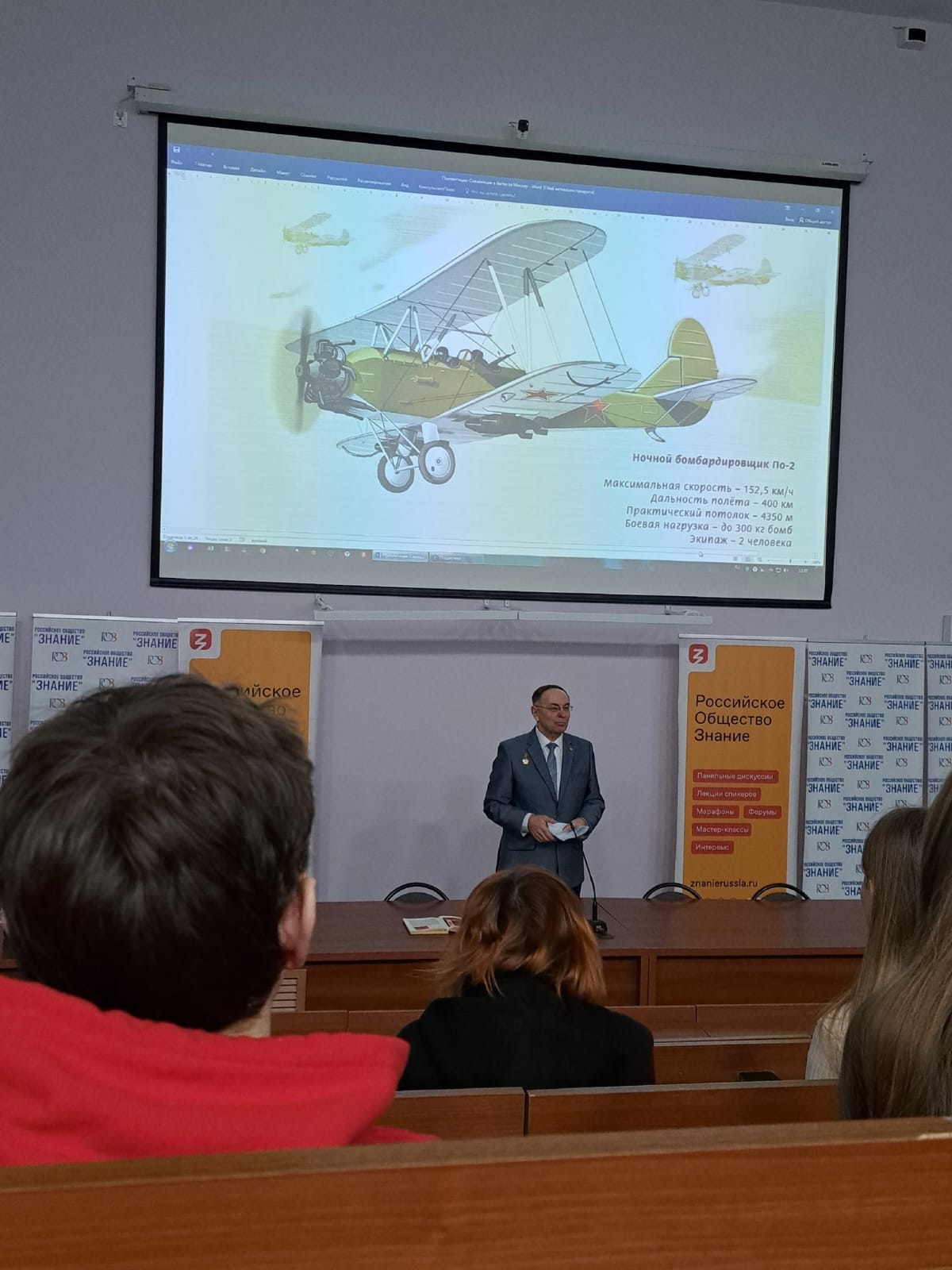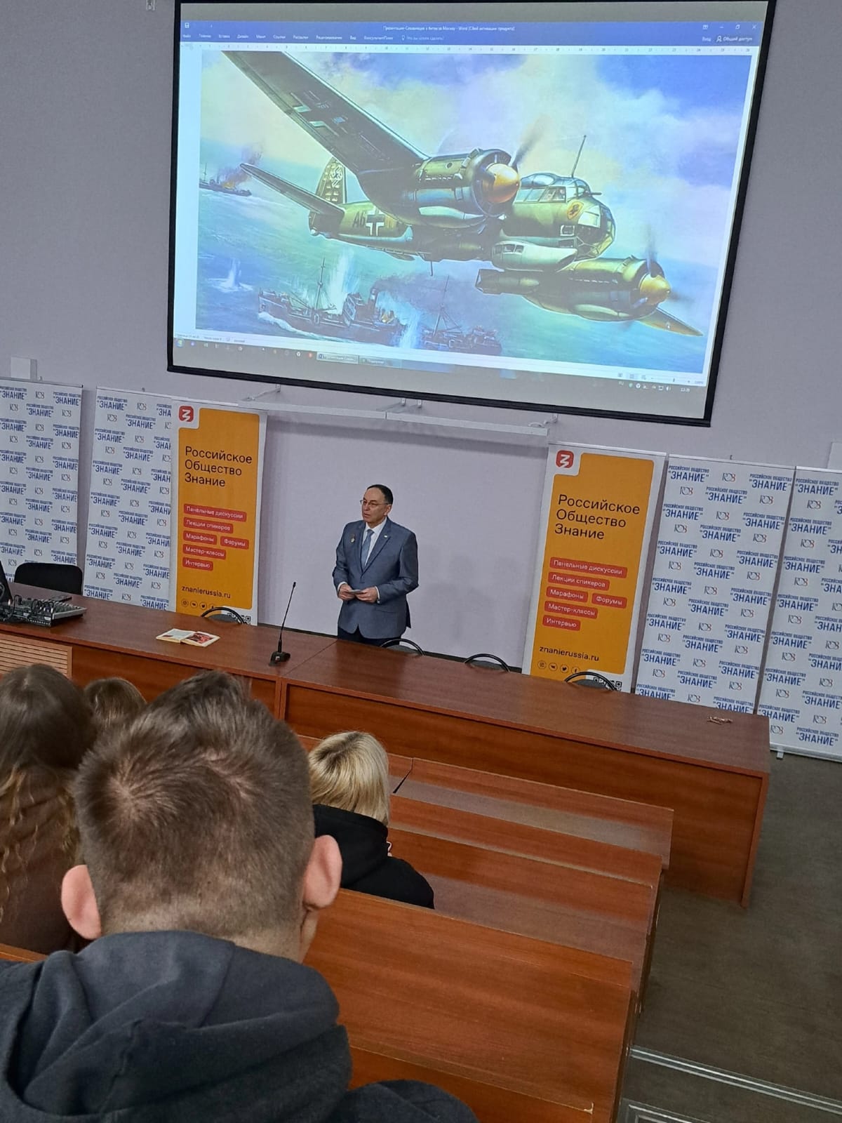 25 января в Институт права и управления ТулГУ для студентов 1 курса Юридического колледжа ТулГУ кандидатом исторических наук, доцентом кафедры ИГиП Дранишниковым Александром Александровичем в рамках Общероссийской общественно-государственной просветительской организации "Знание" была проведена лекция : "Советская авиация в годы Великой Отечественной войны 1941 - 1945 гг." с презентацией.