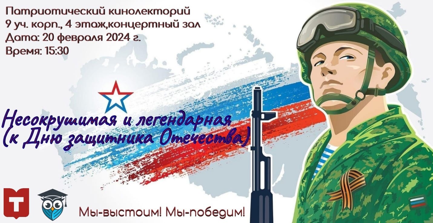 20 февраля 2024 года в Концертном зале ТулГУ прошел патриотический кинолекторий, посвященный празднованию Дня защитника Отечества.