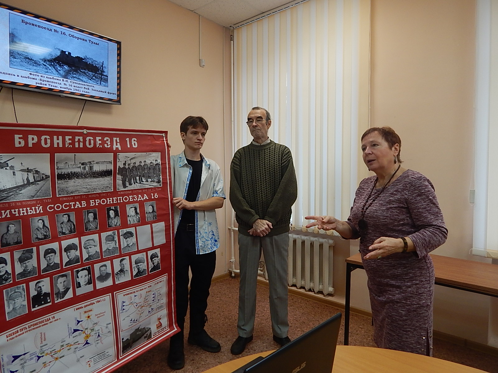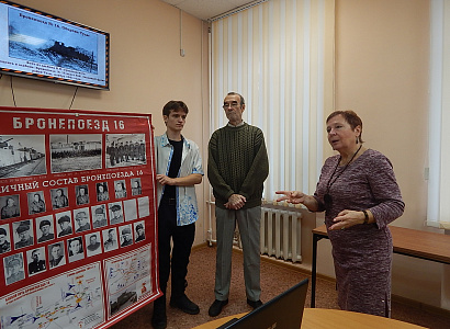 Галина Рафаэльевна рассказала членам клуба «Поиск» о том, с чего началась поисковая работа, приведшая к публикации статьи «Бронепоезд №16. Оборона Тулы: до и после.» в выпуске №15 (2018 г.) Тульского краеведческого альманаха.