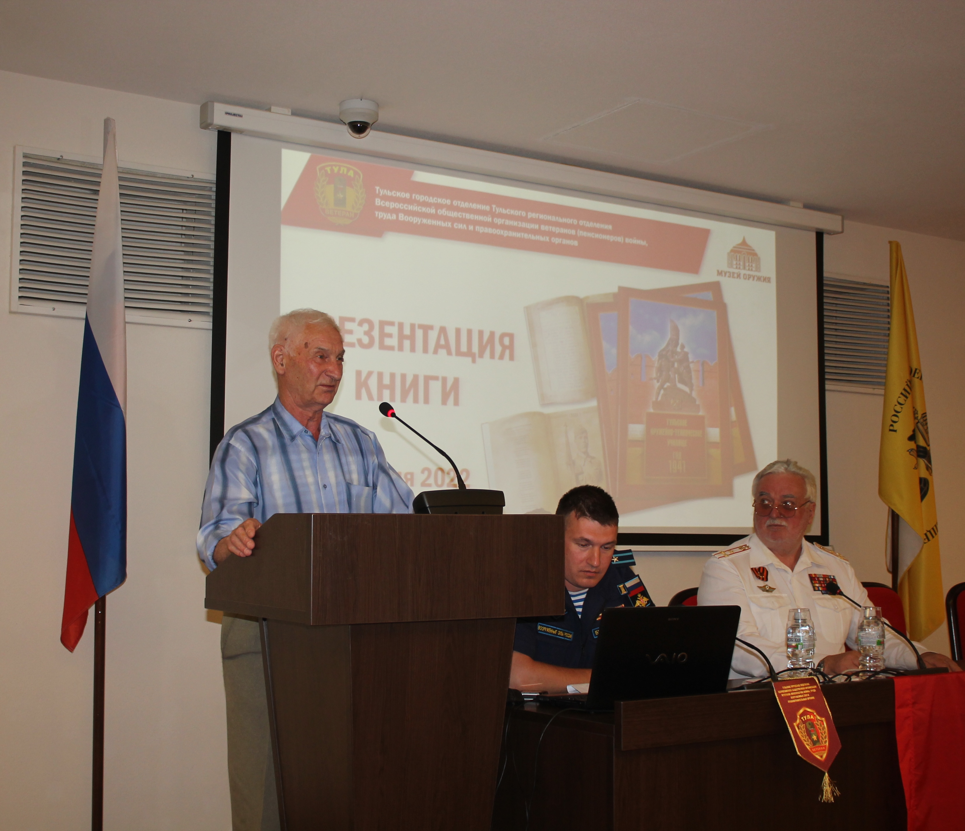 30 июня в помещении Тульского государственного музея оружия «Шлем» Тульский городской Совет ветеранов провел презентацию книги «Тульское оружейно-техническое училище – год 1941», посвященной участию батальона курсантов Тульского артиллерийского училища – одного из старейших военных училищ России в обороне Тулы и Москвы. Книга - результат поисковой работы и изучения, ранее засекреченных, архивных материалов коллективом Тульского городского Совета ветеранов. Она была написана и издана в рамках проекта «Право на бессмертие», выигравшего Грант администрации Тульской области.