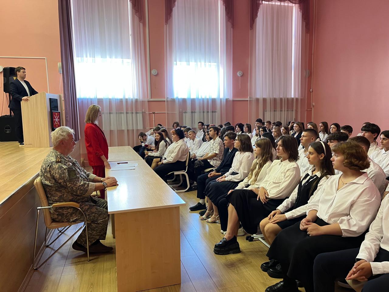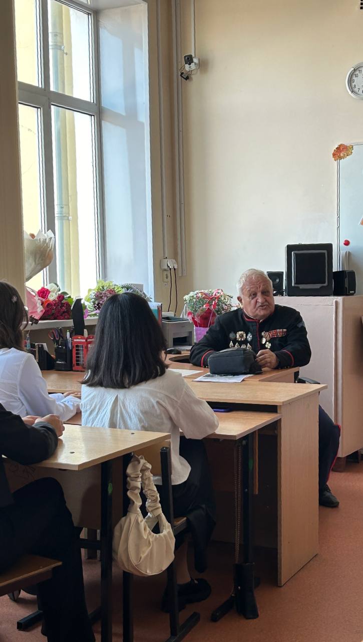 2 сентября 2024 года члены ТРОО "Ветеран" провели традиционную встречу "Разговор о главном" с учениками Центра образования №4 г.Тулы.Почетный ветеран Вооруженных сил России, полковник в отставке Федосеев И.И., ветеран Вооруженных сил России, полковник в отставке Меньшов В.А. и ветеран труда, почетный работник образования Покровская И.П. общались с учениками старших классов о выборе профессии и будущем России. О современной ситуации в мире и в нашей стране, о патриотизме и преемственности в защите Родины. О героях Великой Отечественной войны, локальных войн в Афганистане и Чечне. О терроризме и специальной военной операции. Об ответственности за свою страну.