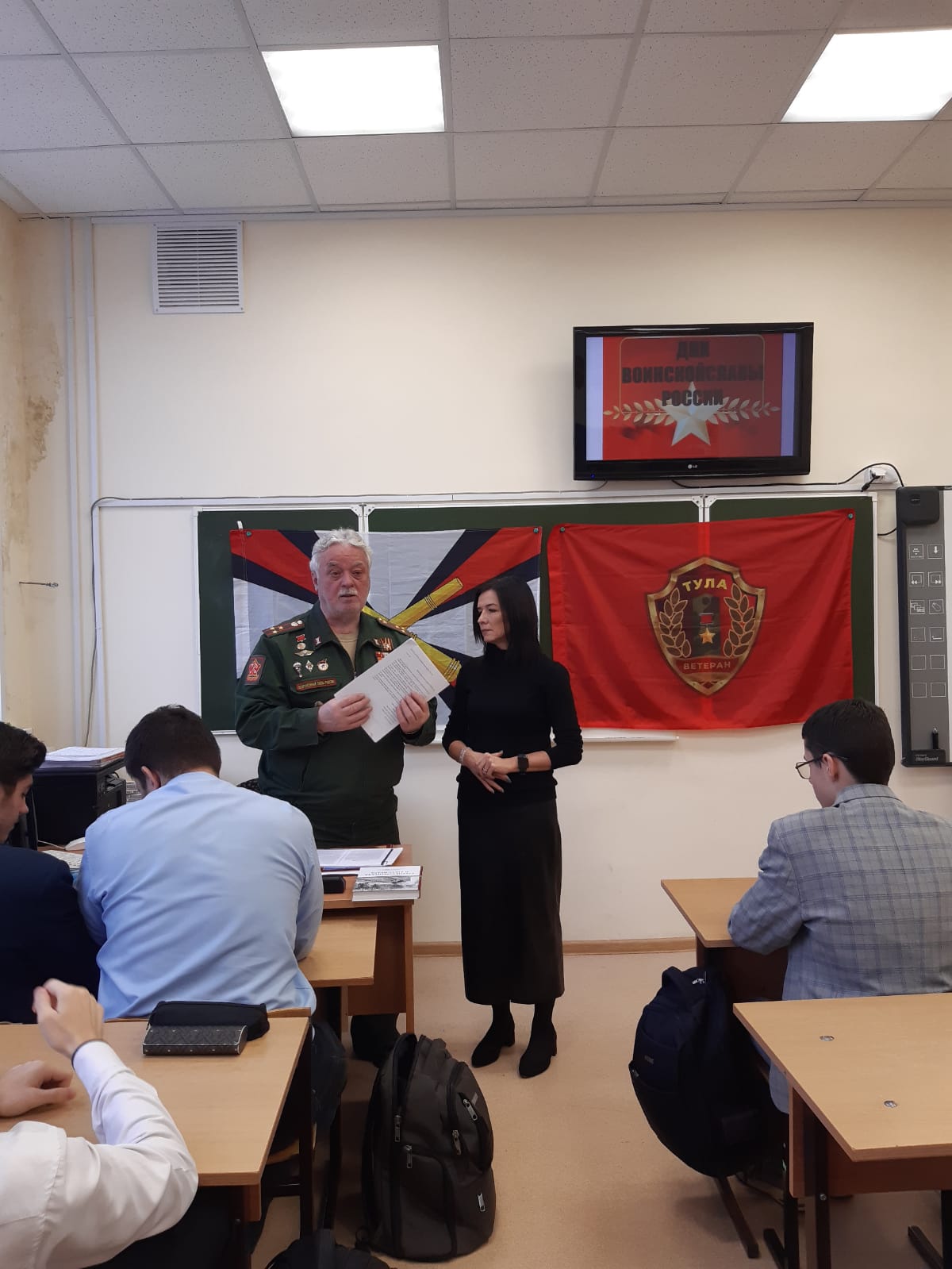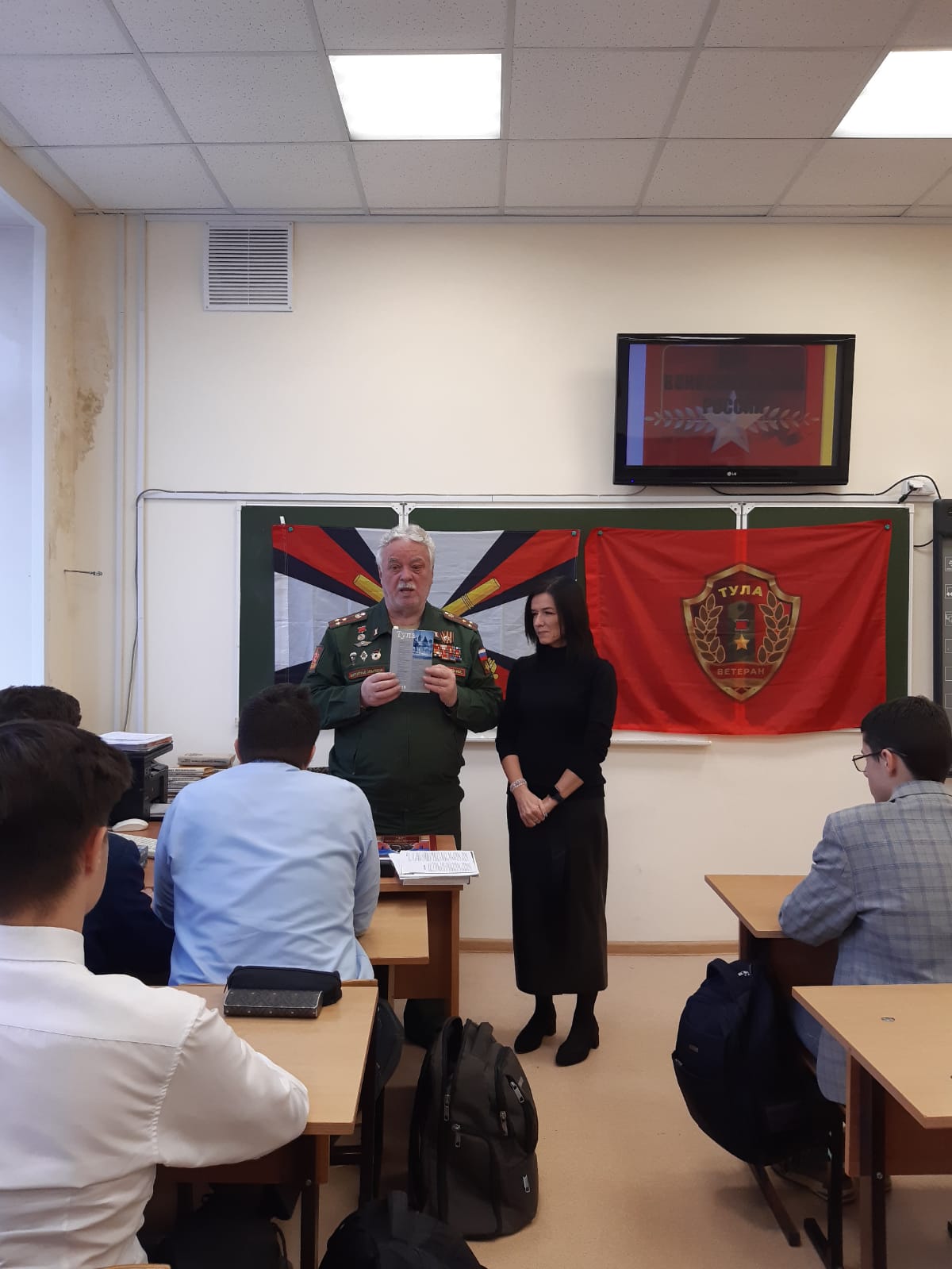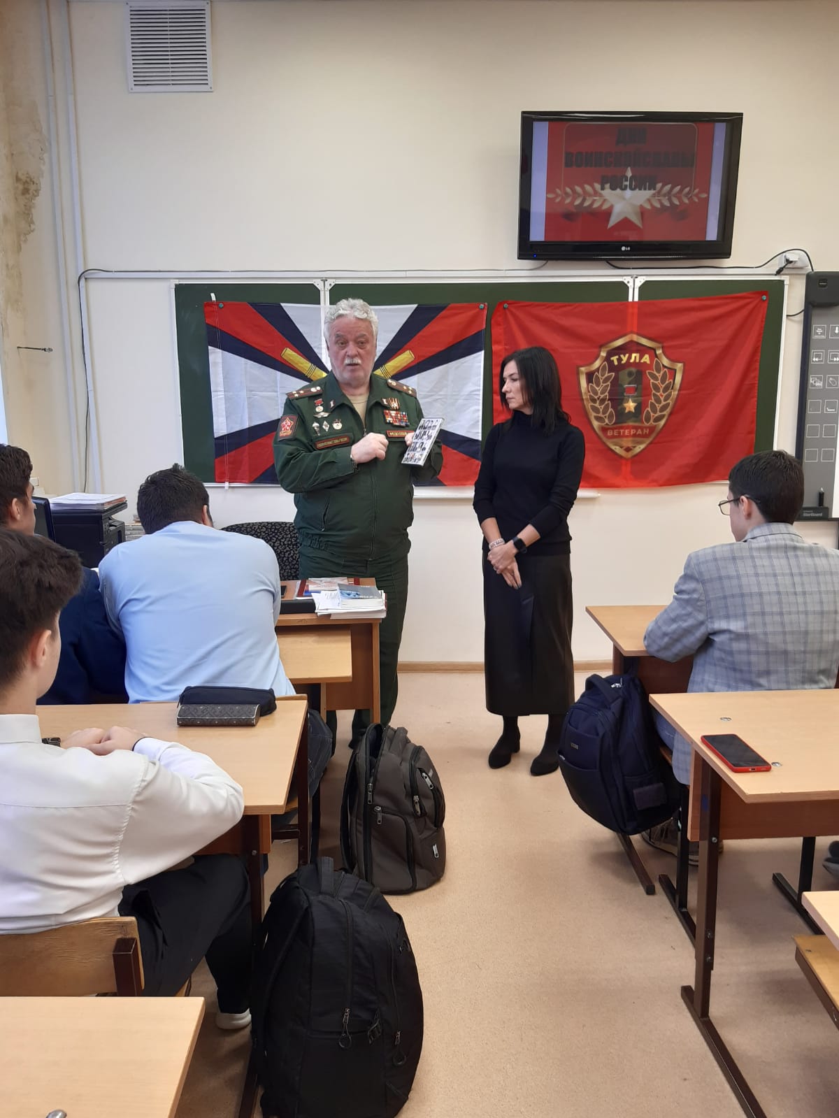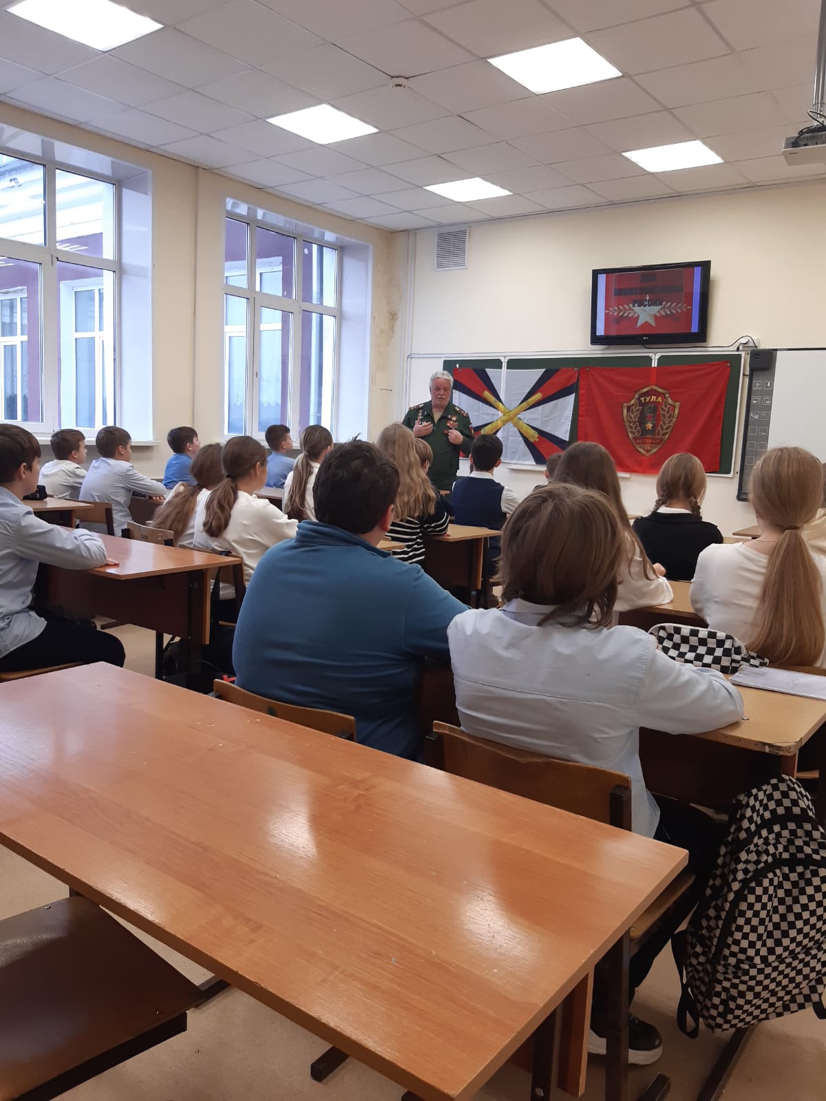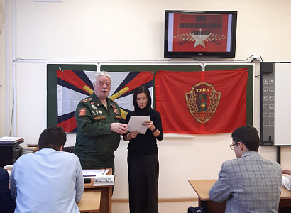 6 декабря 2024 года члены ТРОО «Ветеран» провели очередные «Уроки мужества» в ЦО №4 с учениками 11 класса и учениками 6 класса, посвященные Дням воинской славы России.Председатель ТРОО «Ветеран» Федосеев И.И. рассказал ученикам 11 класса о ходе обороны Тулы в ноябре-декабре 1941 г., об участии