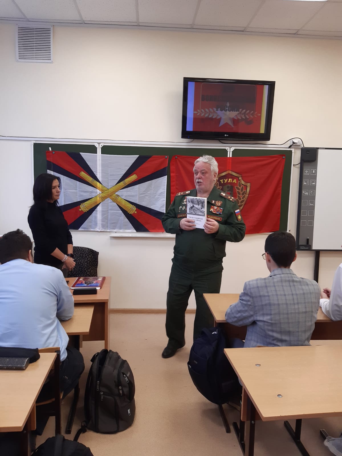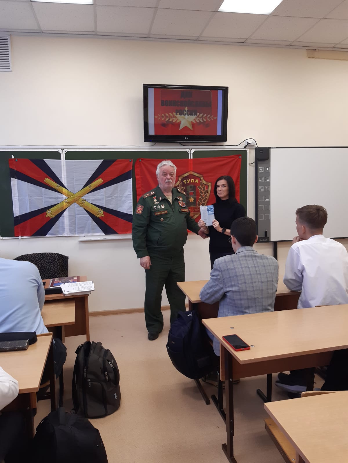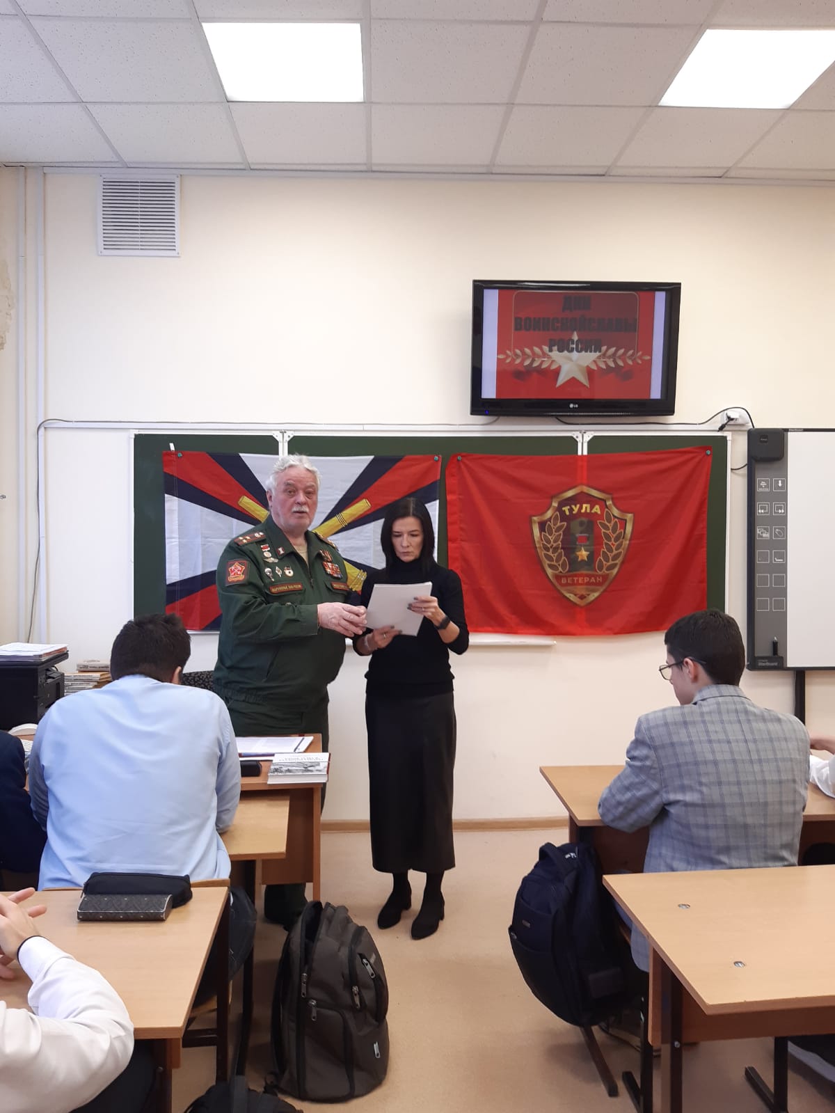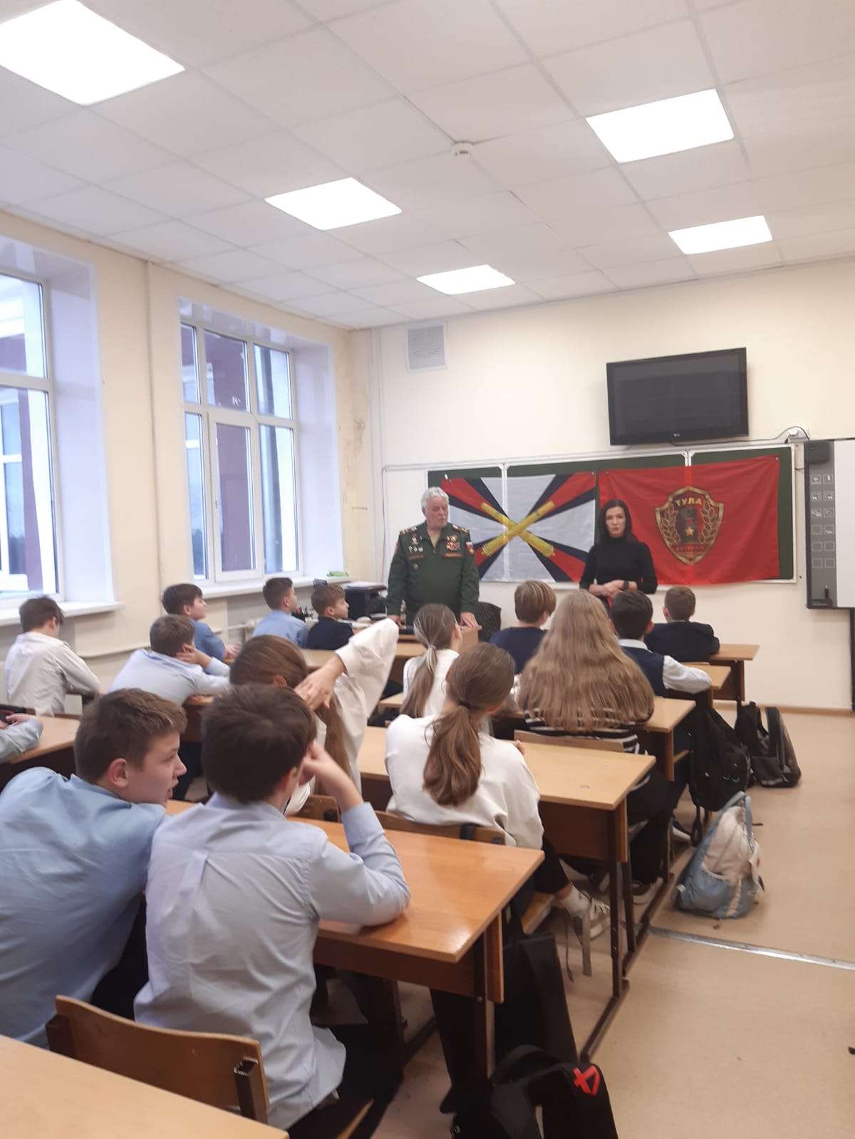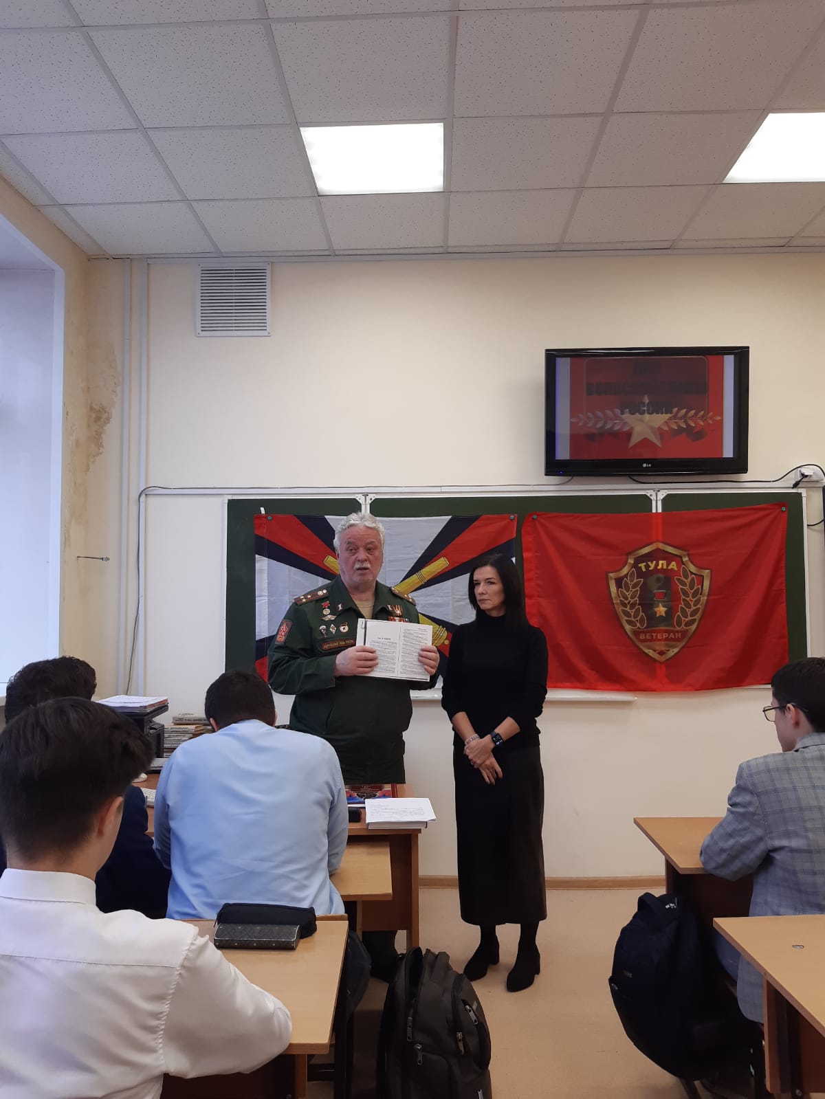 6 декабря 2024 года члены ТРОО «Ветеран» провели очередные «Уроки мужества» в ЦО №4 с учениками 11 класса и учениками 6 класса, посвященные Дням воинской славы России.Председатель ТРОО «Ветеран» Федосеев И.И. рассказал ученикам 11 класса о ходе обороны Тулы в ноябре-декабре 1941 г., об участии