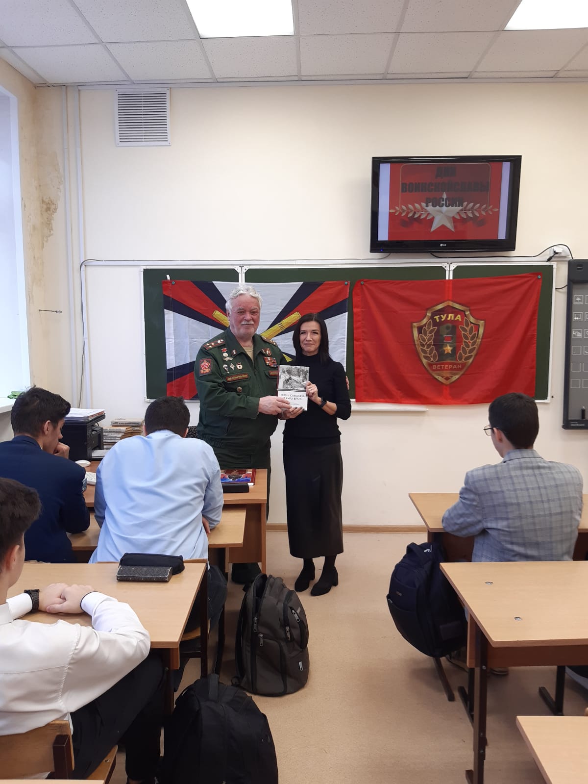 Для кабинета истории были переданы книга А. Белова «Герои спецназа в тылу врага. Записки юного диверсанта.», диск с записью видео интервью с