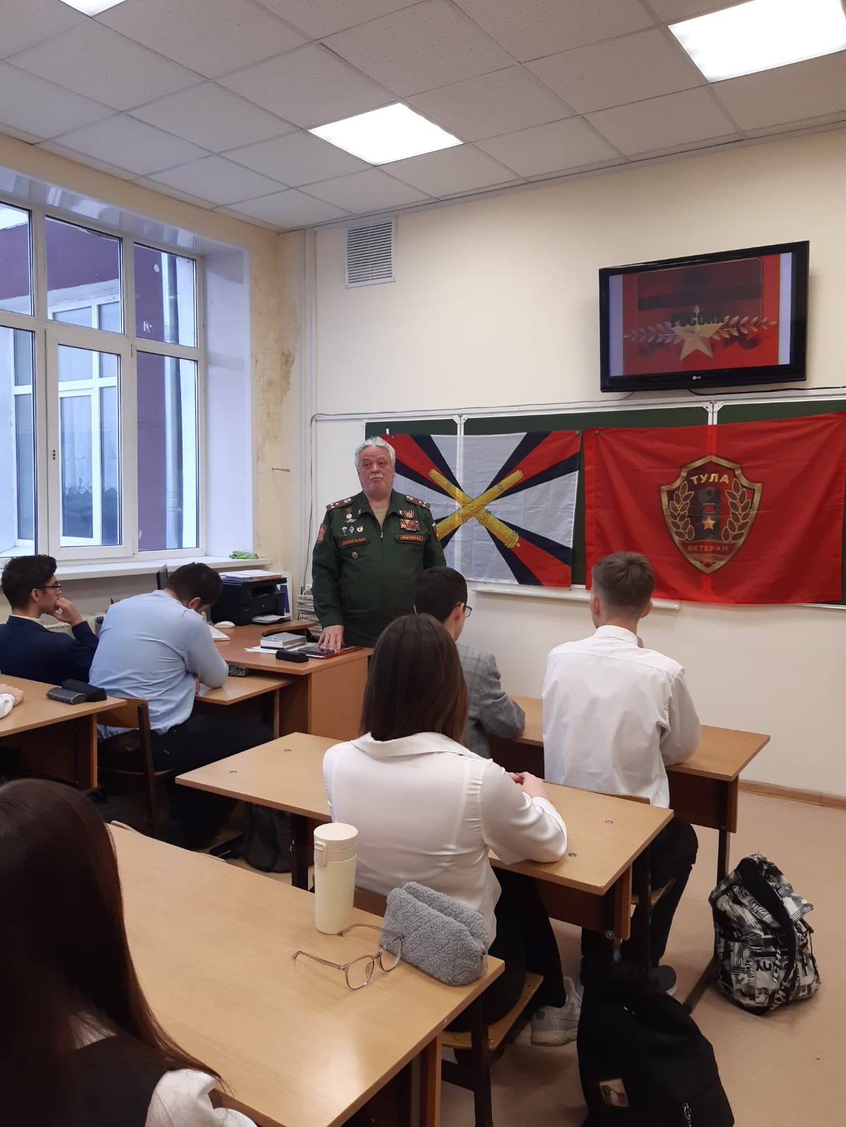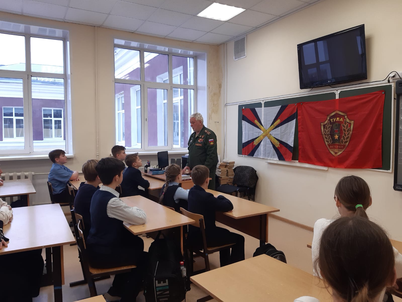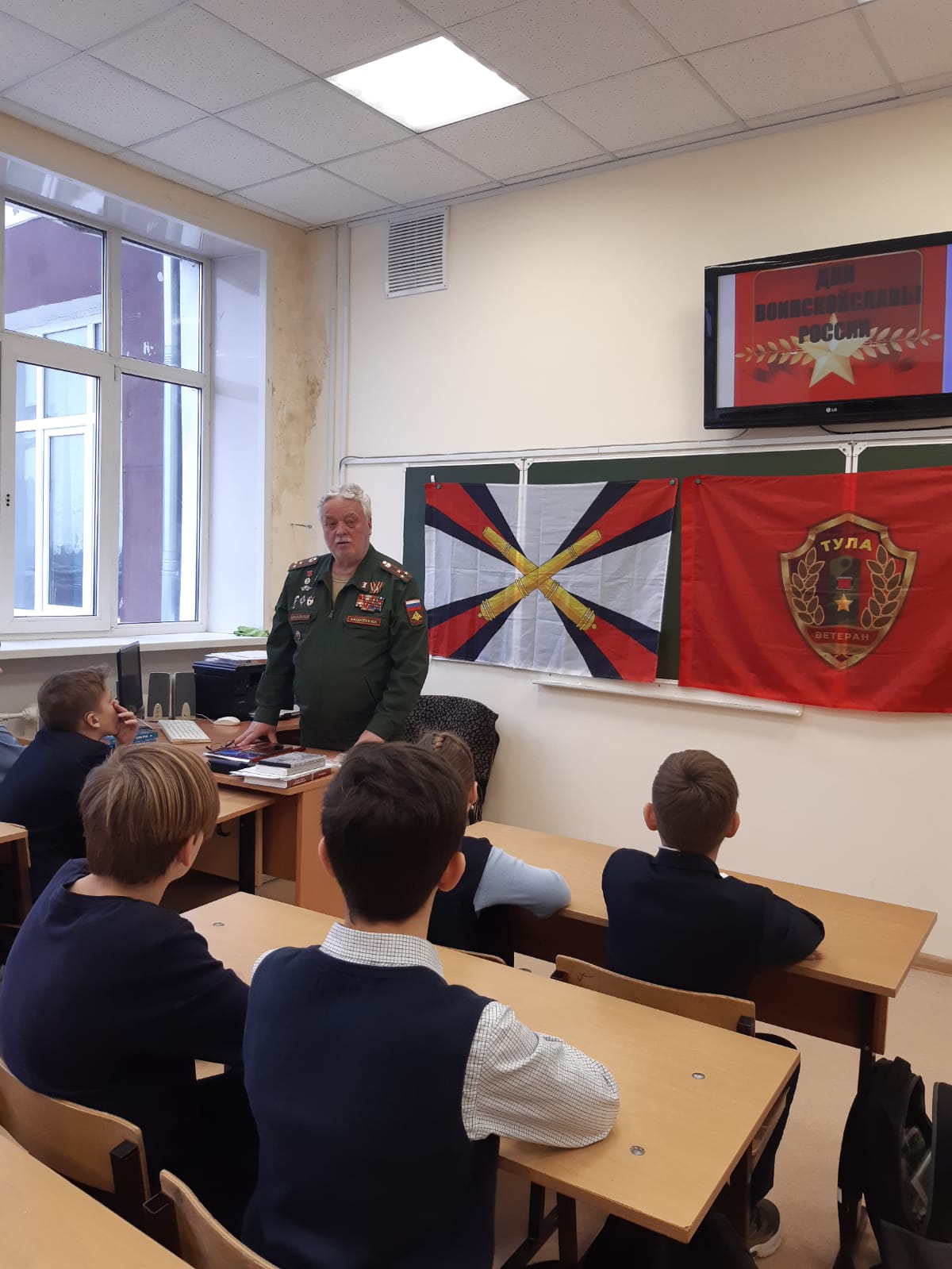 С учениками 6 класса Игорь Иванович говорил о патриотизме русских людей во все времена, об участии в защите Родины всего народа от стариков