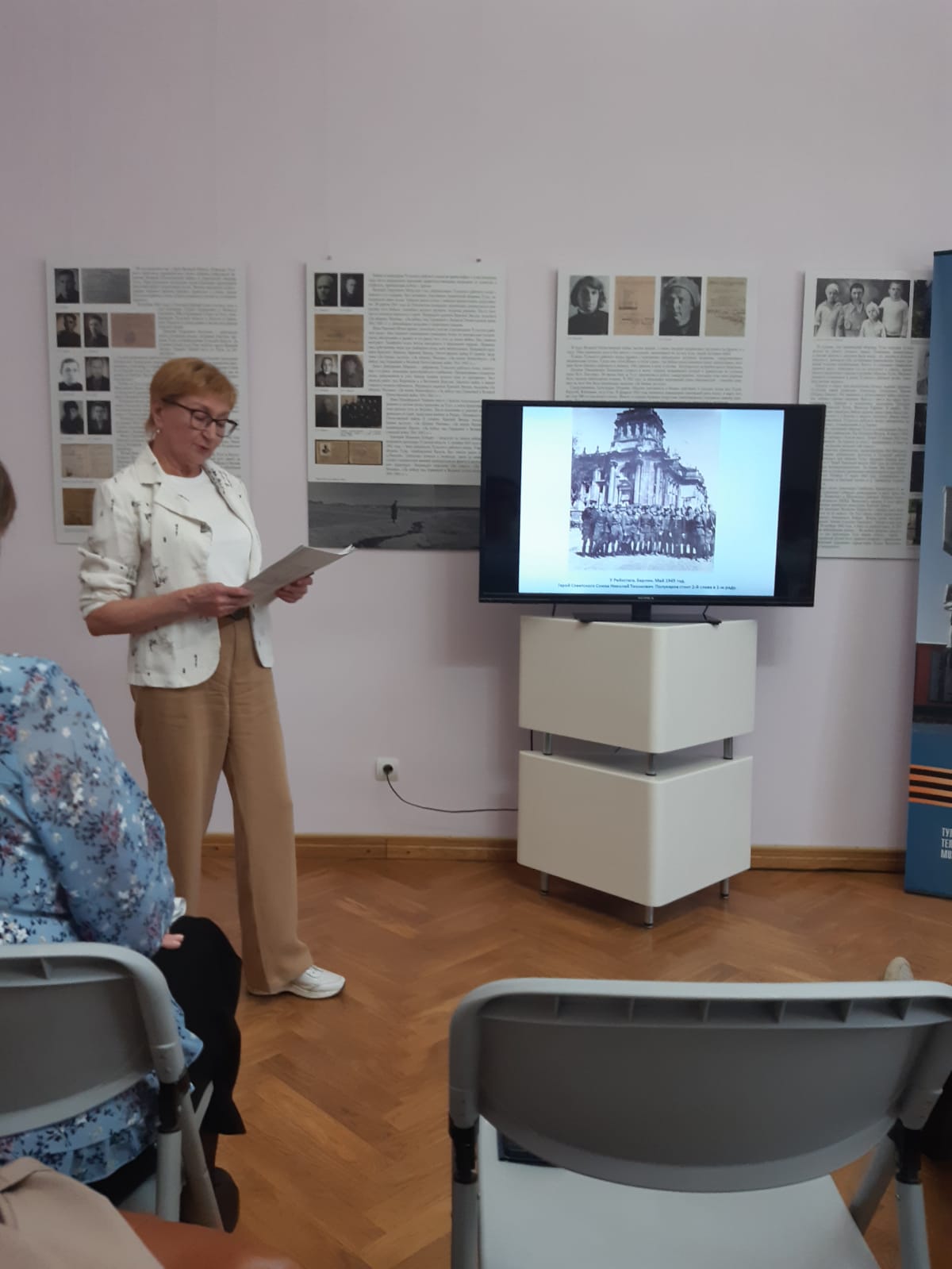 Сотрудник научной библиотеки музея Лариса Васильевна Шишкина (Кузьмина) рассказала о боевом пути своего отца Кузьмина Василия Григорьевича летчика-десантника 106-й десантной дивизии. Рассказала о том, как много лет искала информацию о своих дедах-фронтовиках.