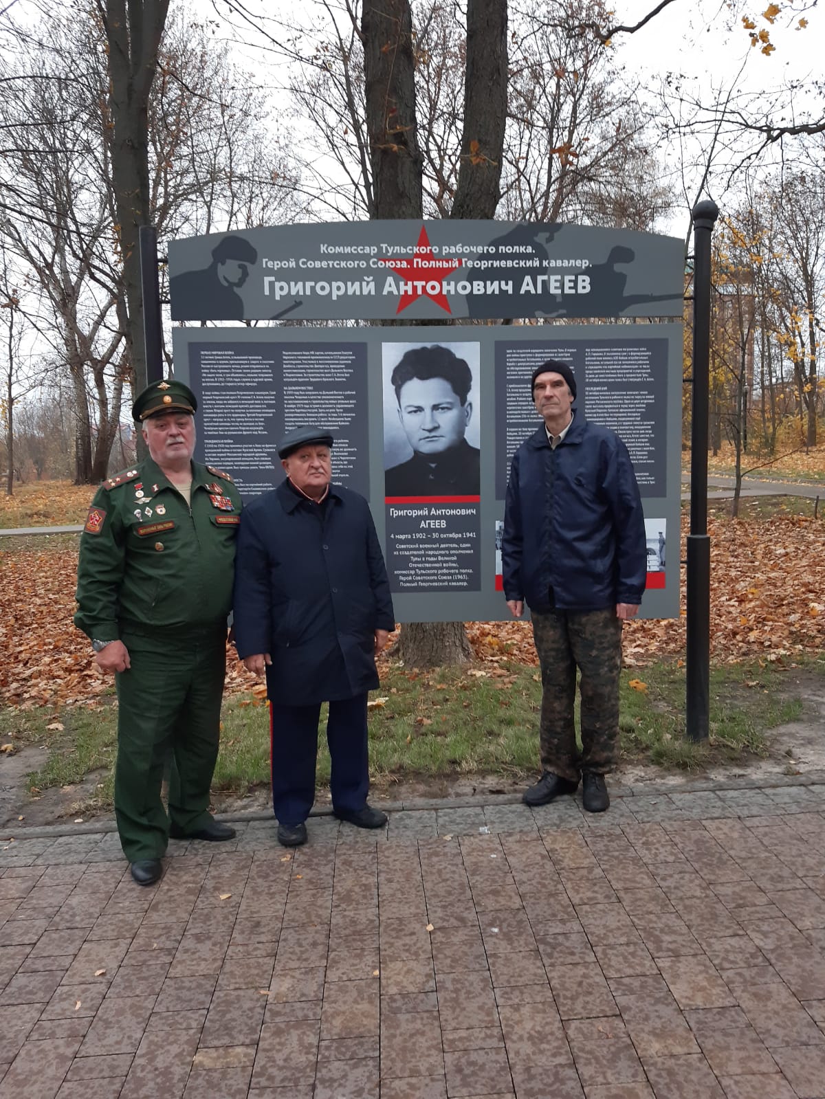 Присутствующие возложили цветы к монументу бойцам и командирам Тульского рабочего полка и к памятнику Григорию Антоновичу Агееву, комиссару Тульского рабочего полка, на месте его гибели.