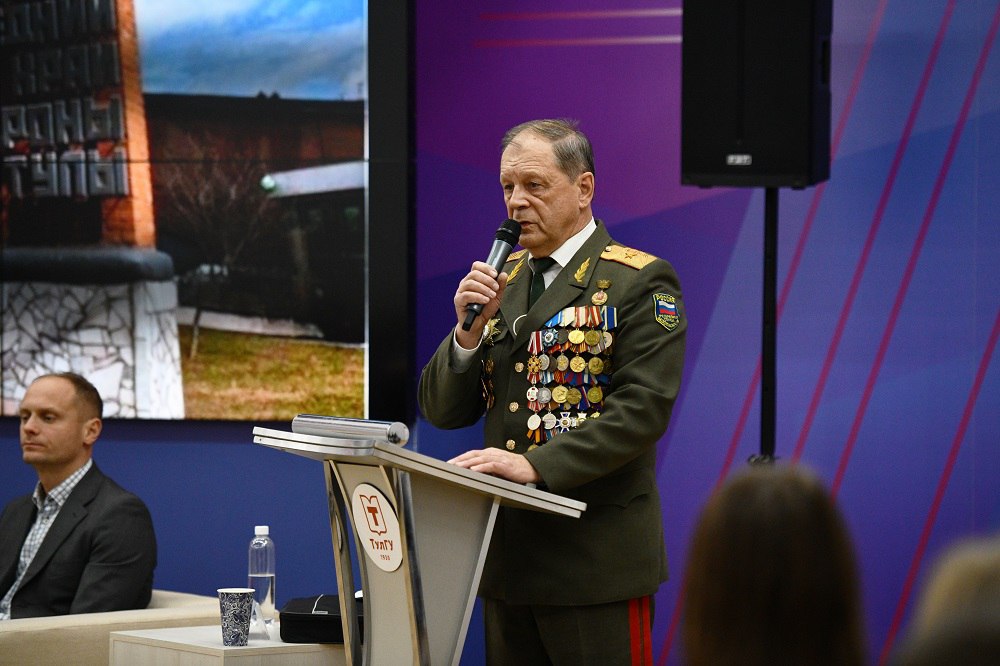 Наш гость поделился со студентами интересными фактами об обороне Тулы в 1941 году — важном эпизоде битвы под Москвой. Также он рассказал ребятам о своей работе над книгами, посвященными роли НКВД в организации защиты города.