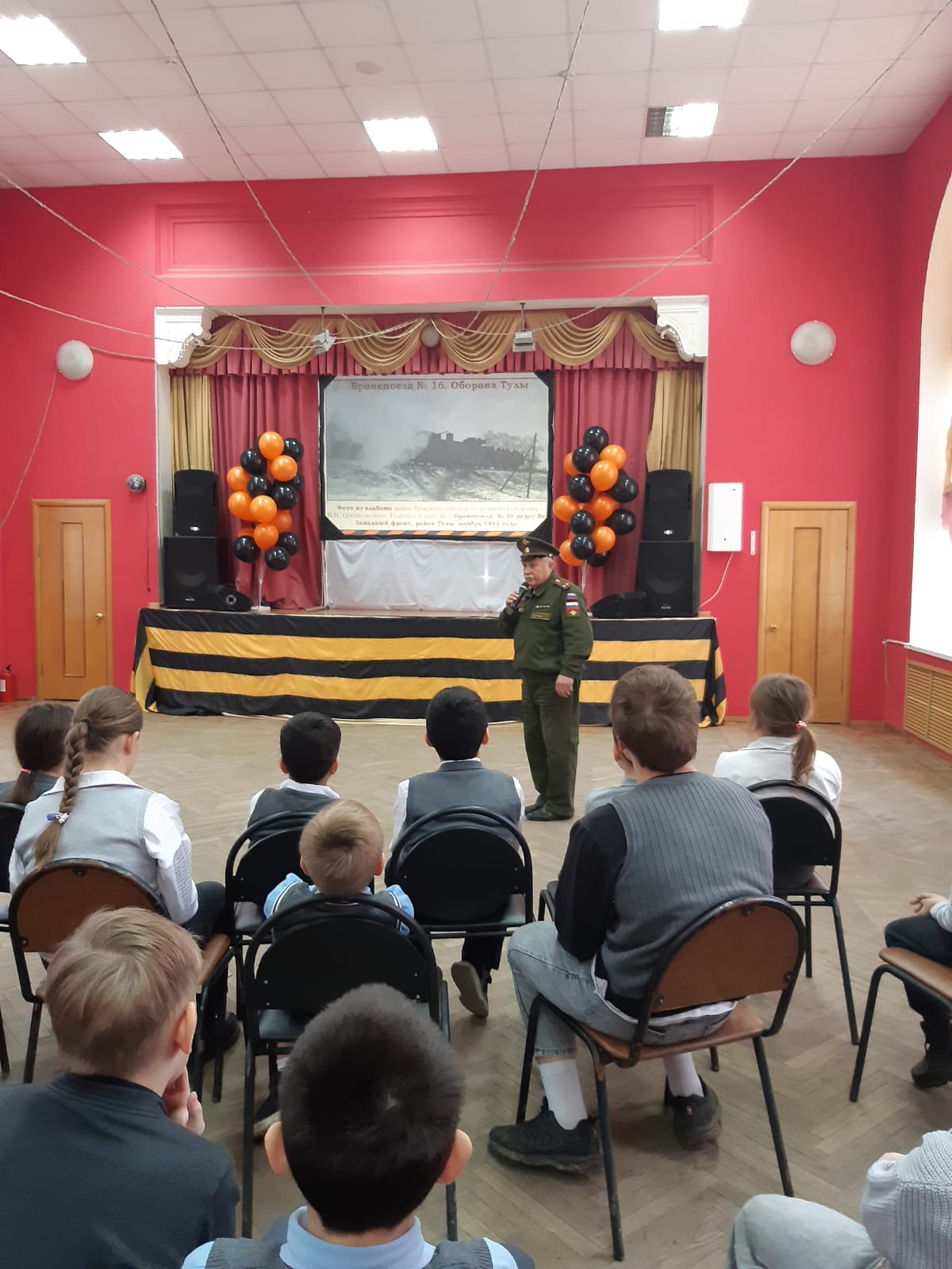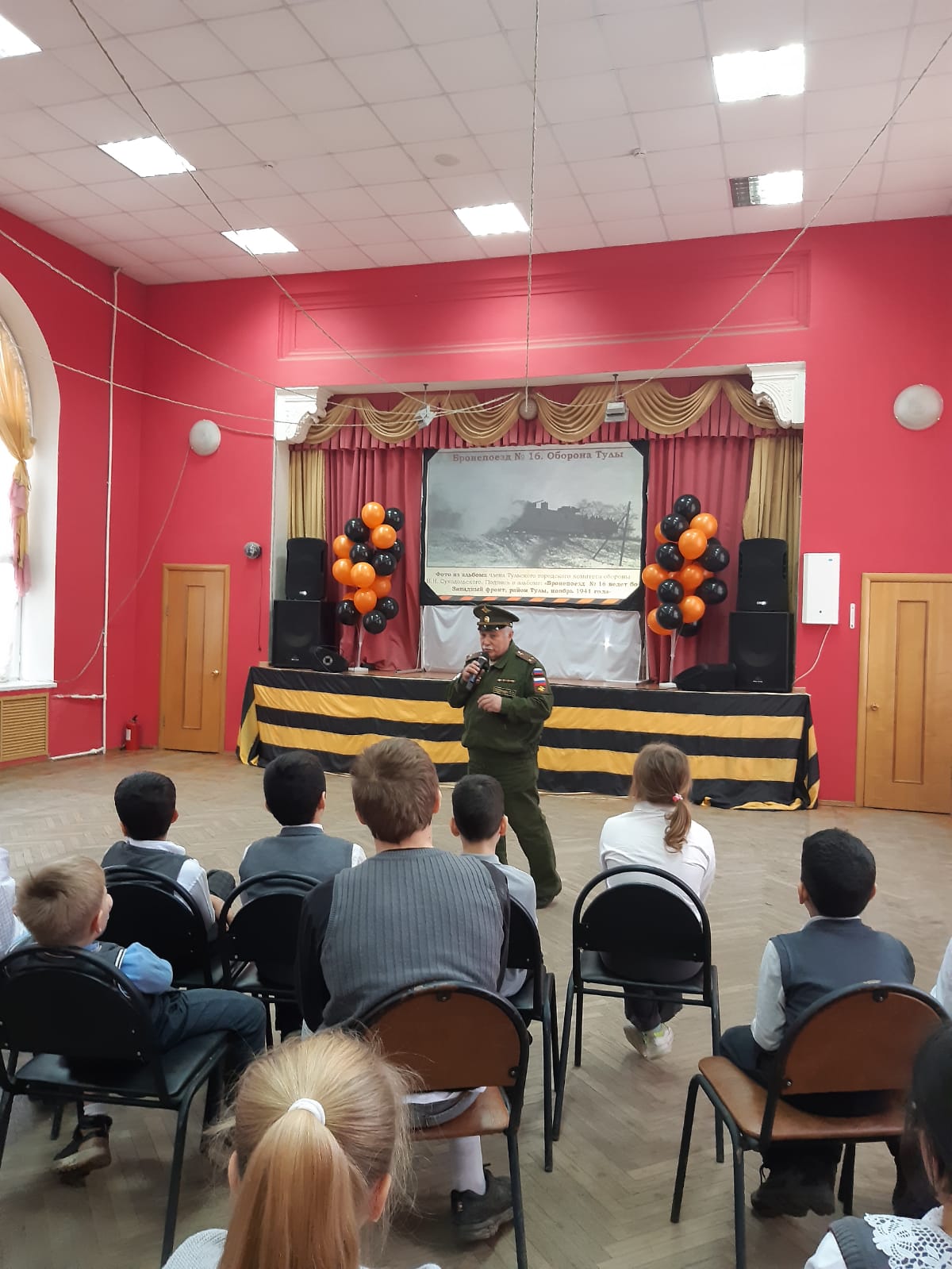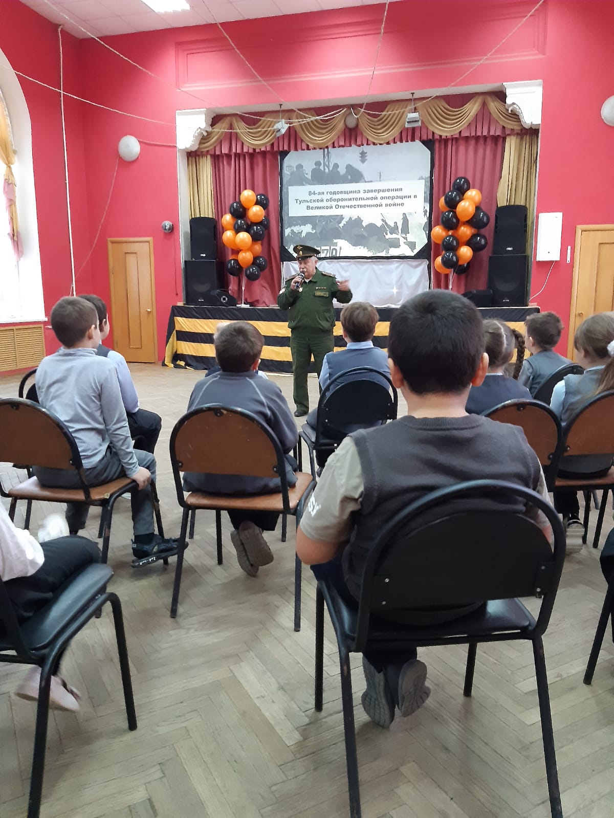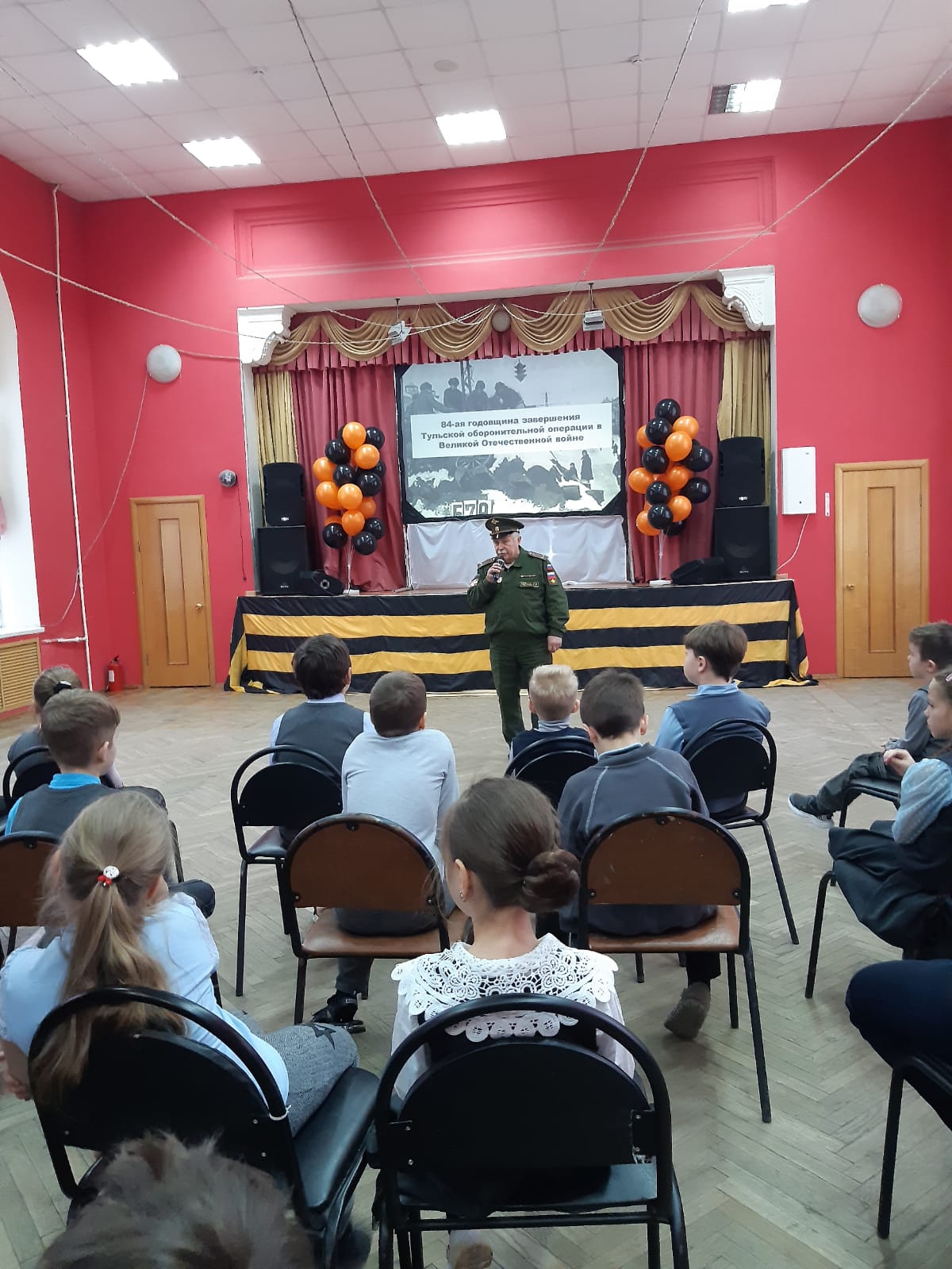 5 декабря 2025 г. заместитель председателя ТРОО «Ветеран» Полунин П.П., подполковник, почетный ветеран Вооруженных Сил РФ принял участие во встрече с учениками 2-х и 3-х классов ЦО №6, которая была посвящена 84-й годовщине освобождения Косой Горы от фашистов. Он рассказал ребятам о том, как проходила Тульская оборонительная операция в районе Ясной поляны, Косой горы, ближайших деревень и поселков – там, где сейчас живут и учатся эти дети. Рассказал о роли бронепоезда №16 в обороне Тулы.