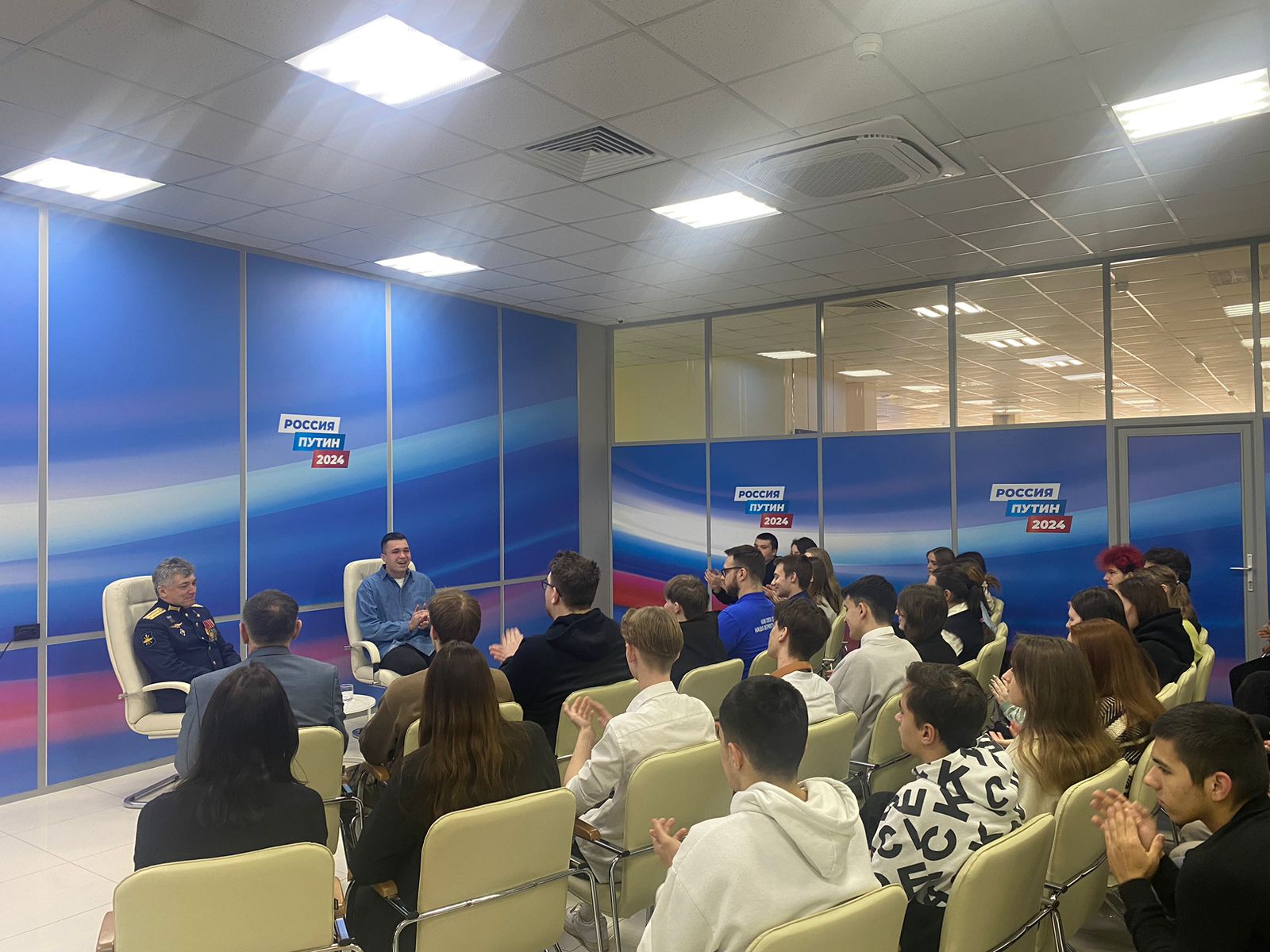 28 февраля 2024 года в Штабе общественной поддержки Тульской области прошла встреча с доверенным лицом кандидата в Президенты РФ В.В. Путина Героем Российской Федерации, Заслуженным военным летчиком России полковником Сергеем Ивановичем Демьяненко.Во встрече активное участие принял член бюро Тульского городского Совета ветеранов (председатель - И.И.Федосеев), кандидат исторических наук, доцент кафедры "История государства и права" Института права и управления ТулГУ А.А.Дранишников с группами студентов университета.