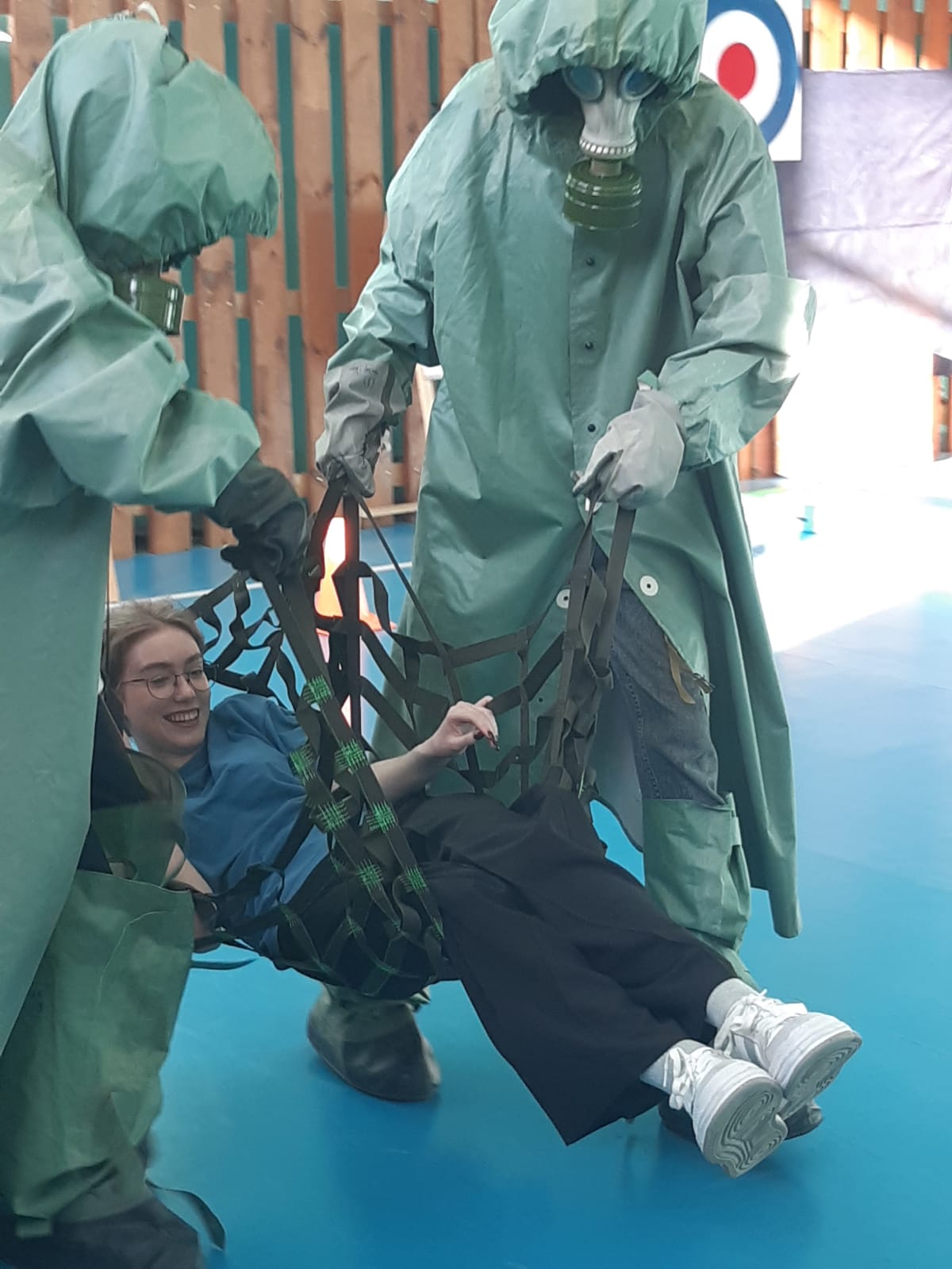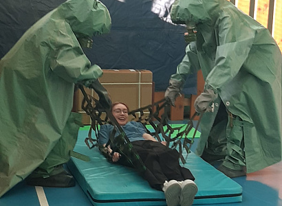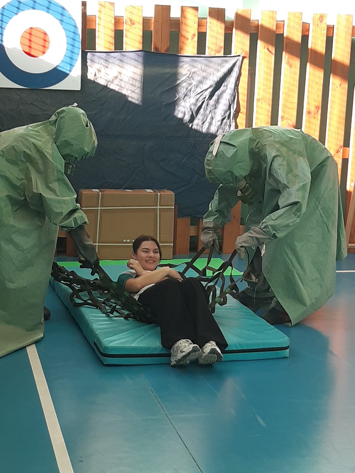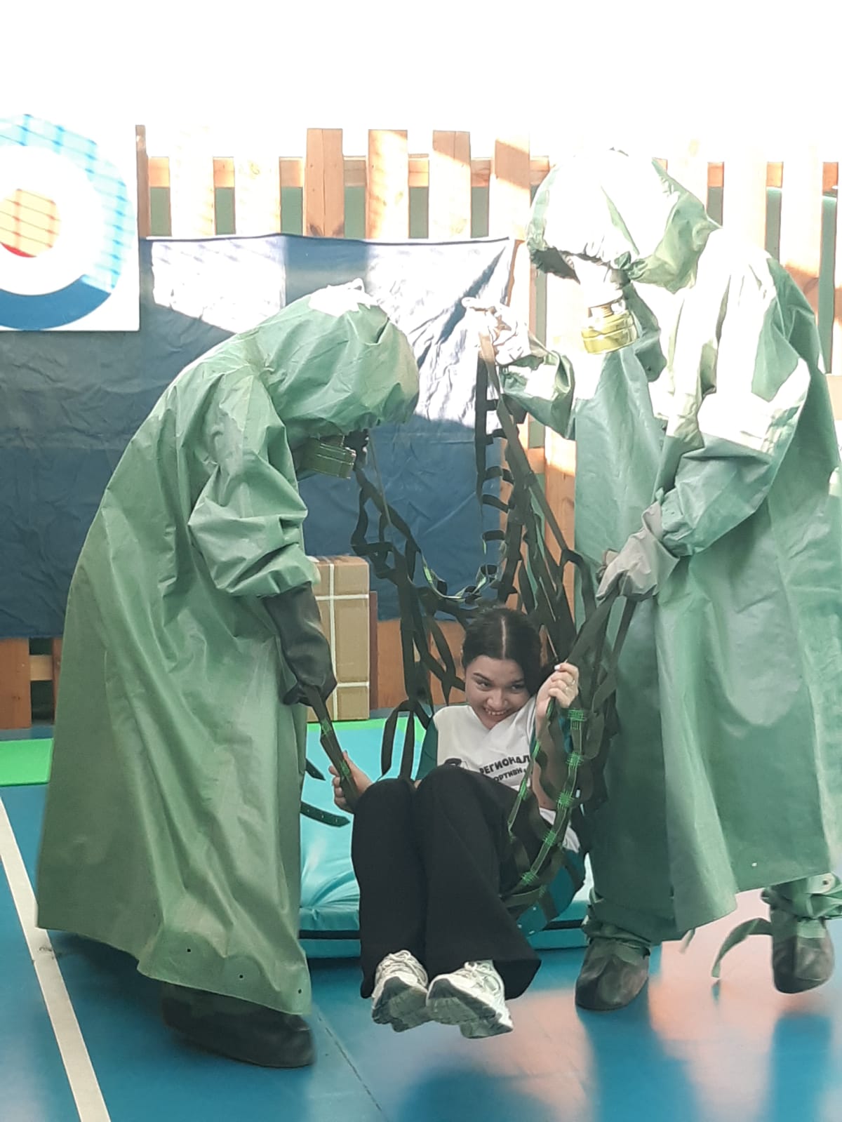 В спортивном зале ребята, в форме соревнований, продемонстрировали военно-спортивную подготовку, умение собирать и разбирать автомат, стрельбу по мишеням из пневматического ружья, транспортировку «раненного товарища» в сложных условиях – обмундировании химзащиты и др. Посоревновались в теоретической подготовке. Хорошо, что победила дружба!