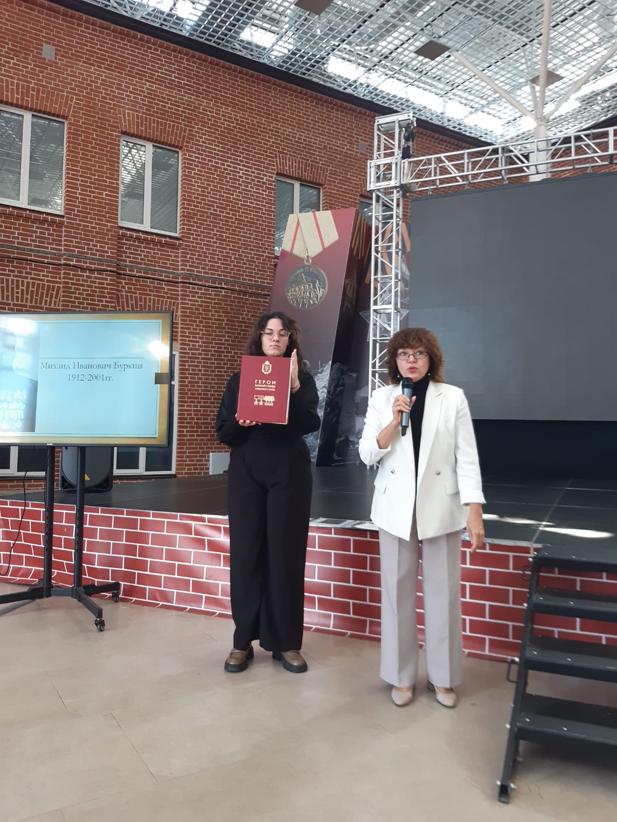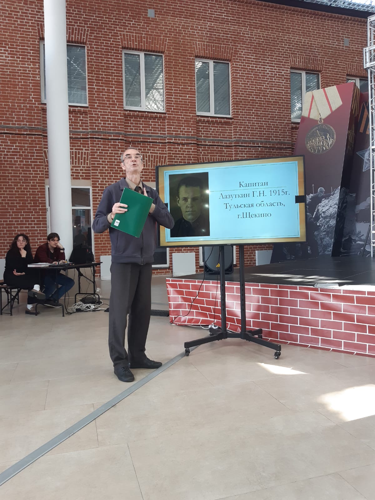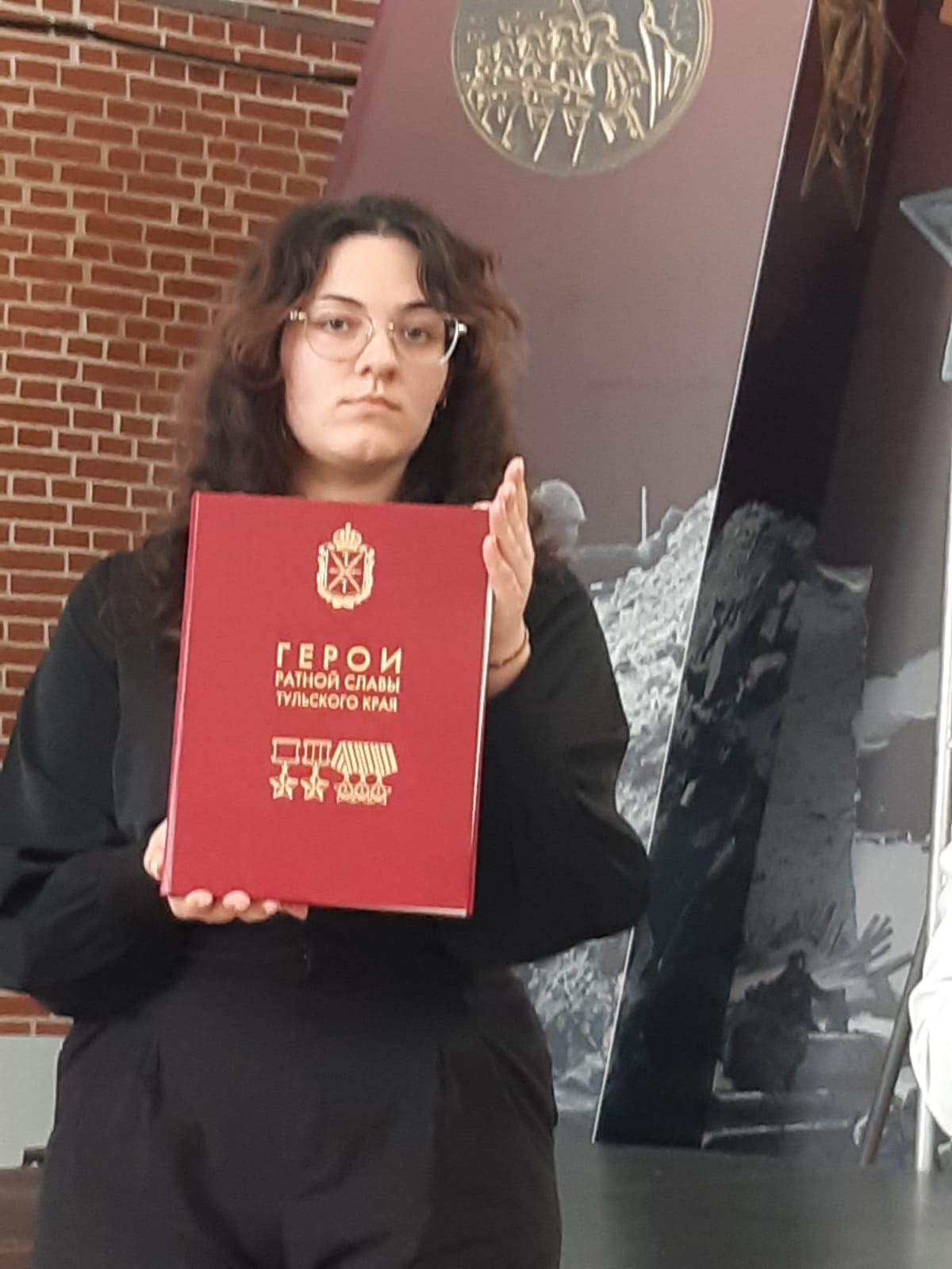 Экскурсовод музея Алиса Чугунова рассказала о 2-х Героях Советского Союза участниках войны с Японией: летчике Буркине Михаиле Ивановиче, совершившем 138 боевых вылетов и Воронкове Максиме Георгиевиче. Истории их подвигов внесены в книгу «Герои ратной славы Тульского края».