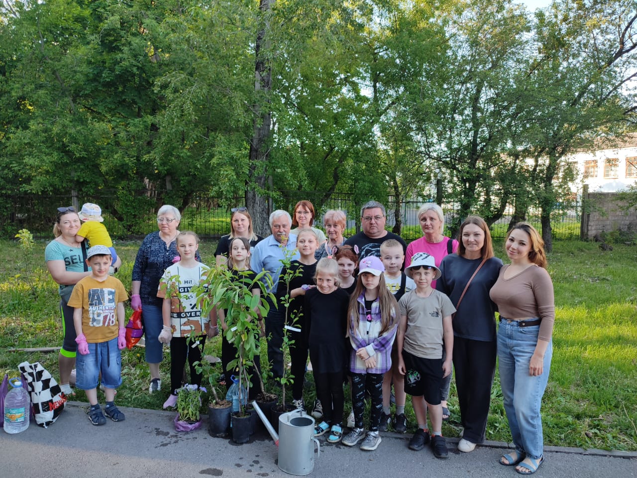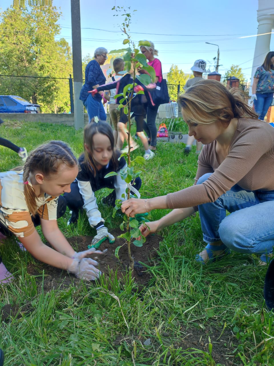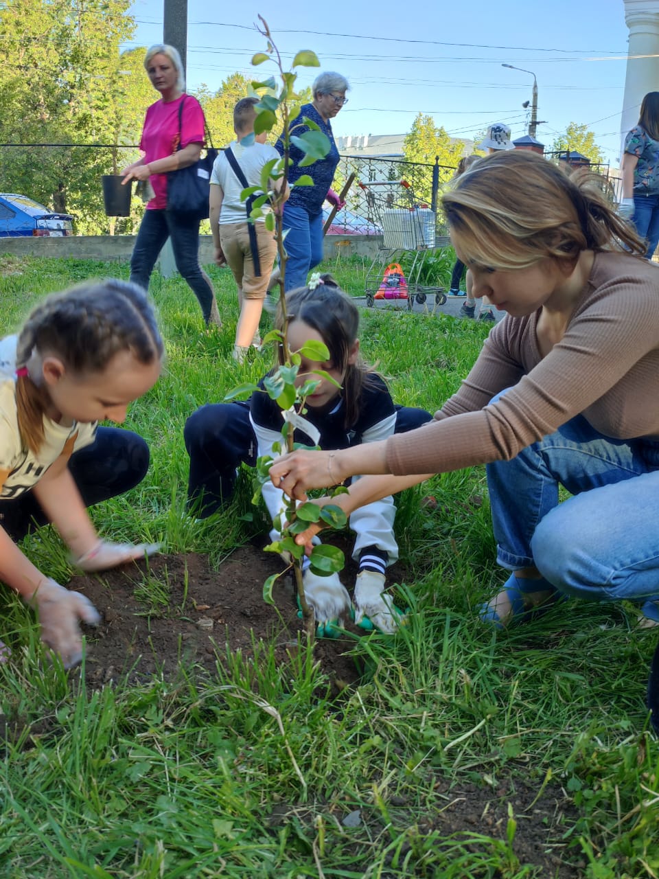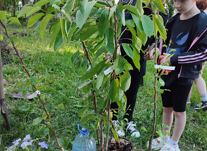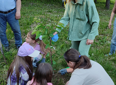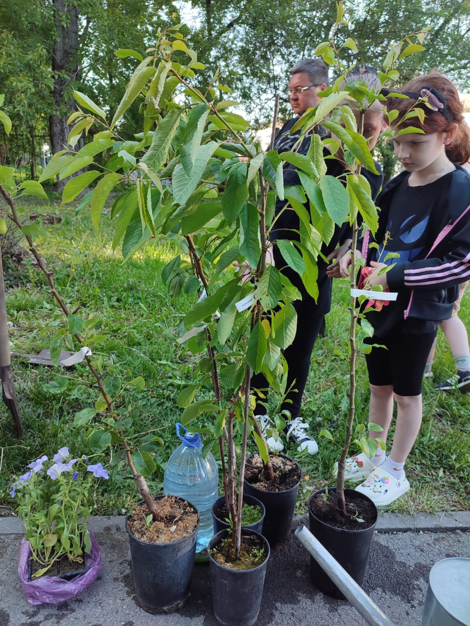 27 мая в парке на Косой Горе член ТРОО "Ветеран" Полунин П.П. с учениками 2 кл. школы 65 посадили яблони в честь окончания учебного года