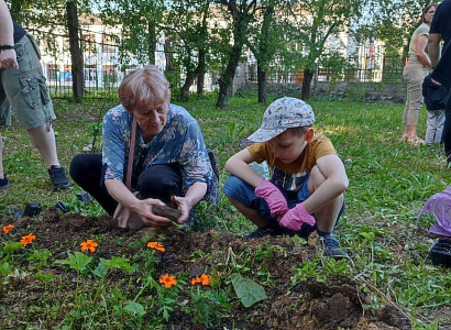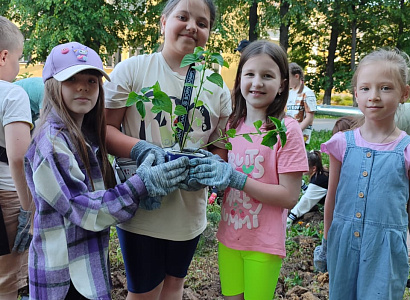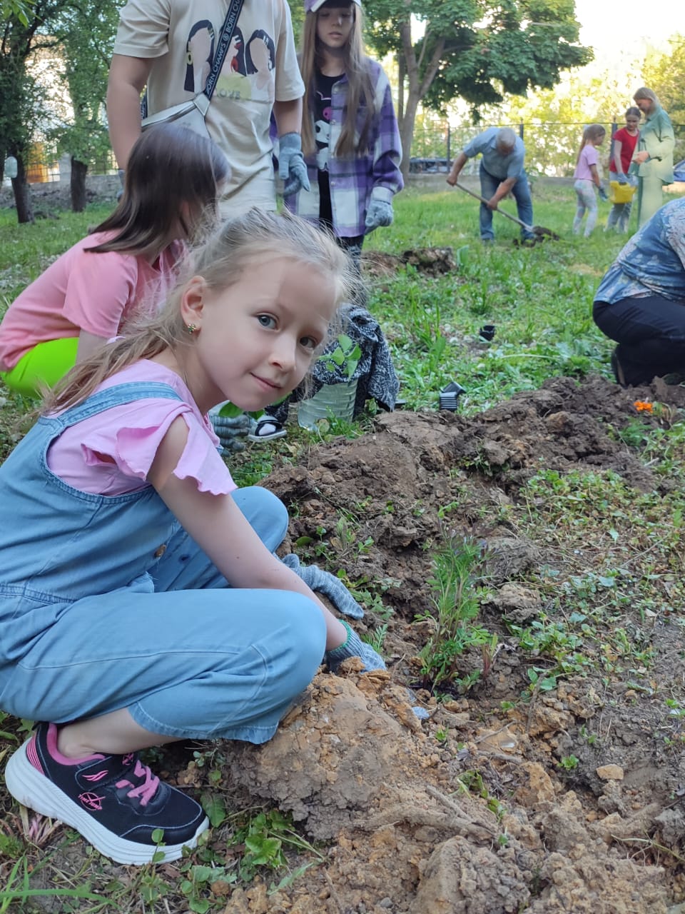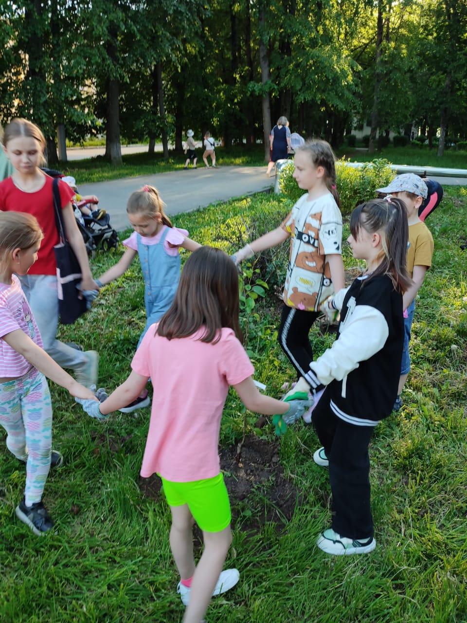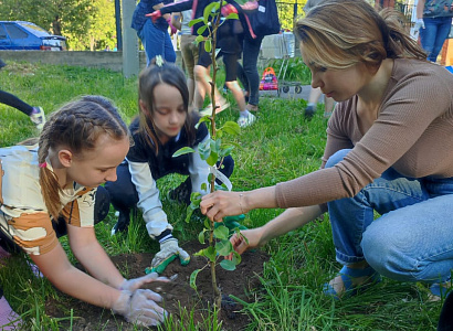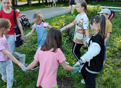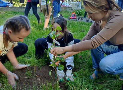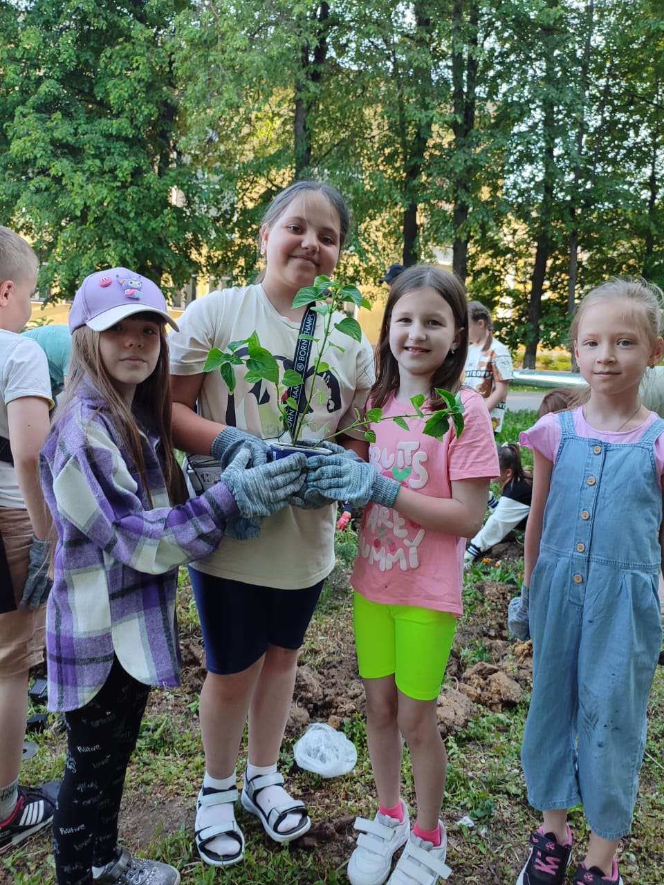 27 мая в парке на Косой Горе член ТРОО "Ветеран" Полунин П.П. с учениками 2 кл. школы 65 посадили яблони в честь окончания учебного года