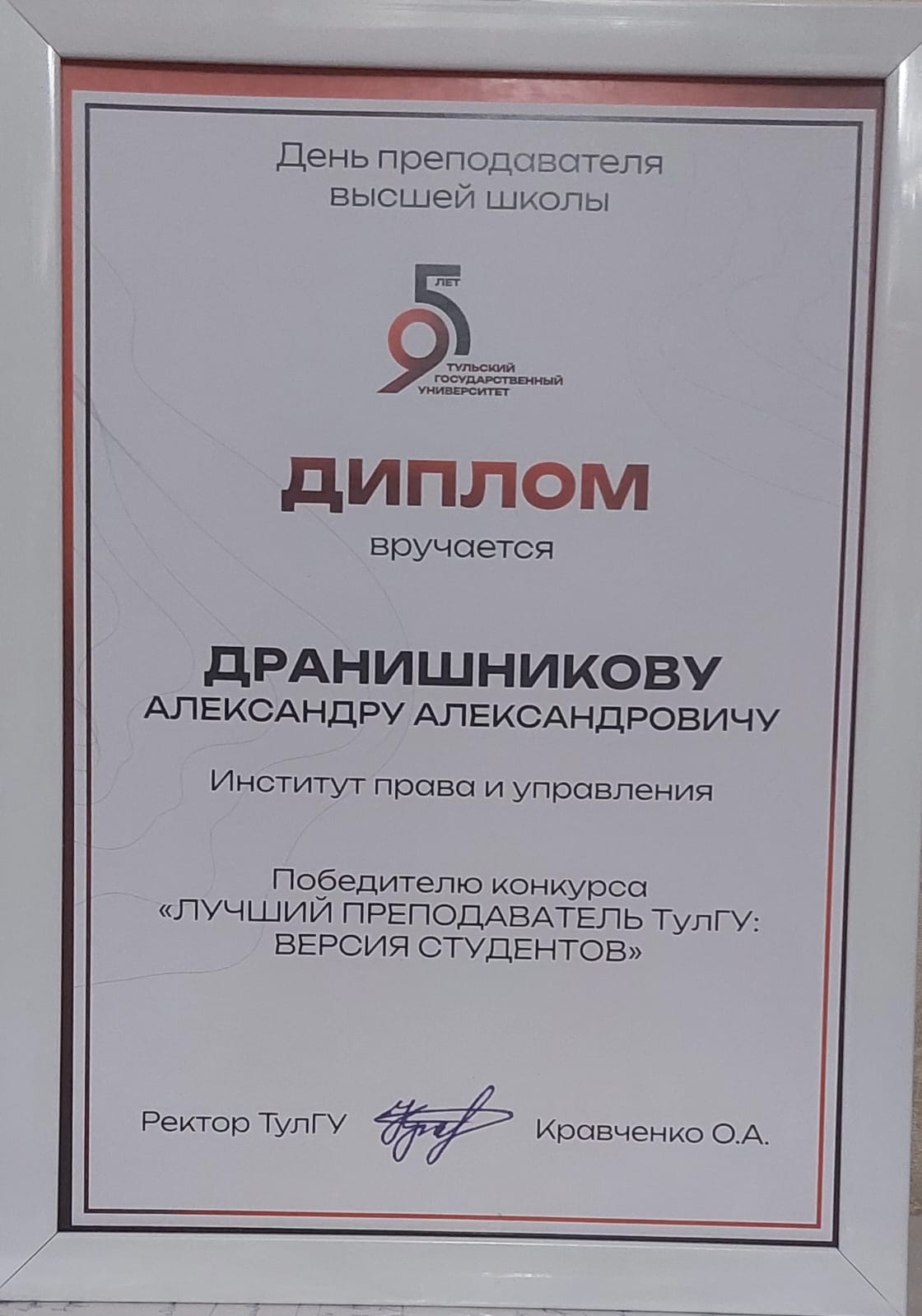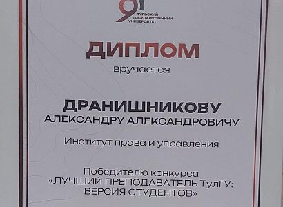 От души поздравляем!! Так держать!!! Дранишников А.А. Заместитель Председателя Тульской региональной общественной организации "Ветеран", награжден Дипломом как "Лучший преподаватель ТулГУ: Версия студентов"