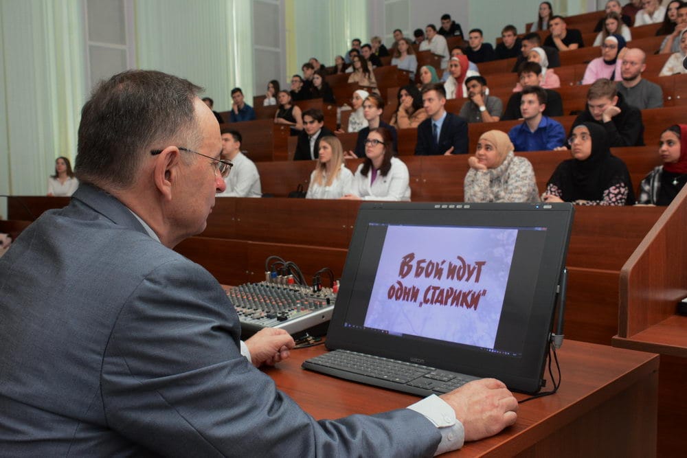 Затем состоялся просмотр художественного фильма «В бой идут одни «старики», снятого в 1973 году режиссёром Леонидом Быковым. Кинолента повествует о буднях лётчиков-истребителей в годы Великой Отечественной войны. Им еще многое предстояло испытать — и жар боев, и радость первой победы над врагом, и величие братства, скрепленного кровью, и первую любовь, и горечь утраты... Картина вызвала живой интерес и у российских, и у иностранных студентов, позволила почувствовать дух времени.